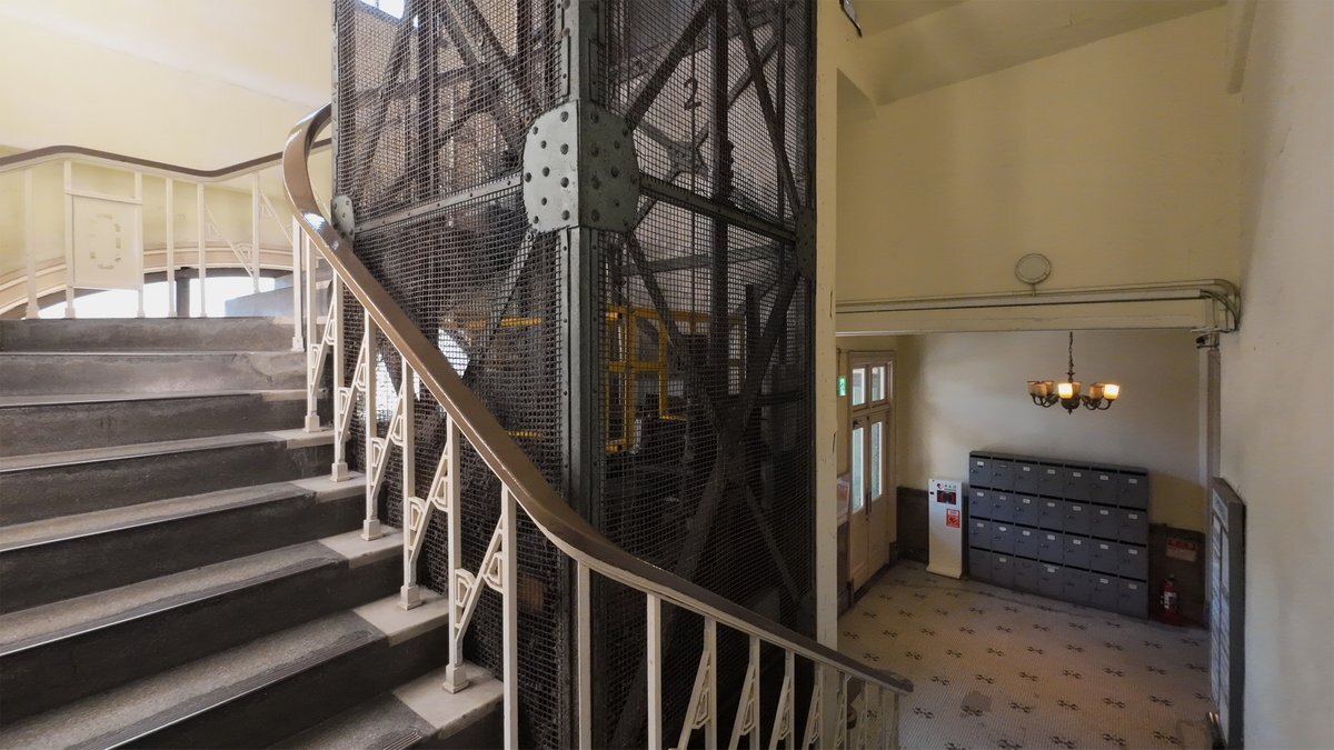 11月10日は #エレベーターの日 ということで、JP門司港ビル / 旧 日本郵船門司支店(八島知、1927・S2、福岡県北九州市門司区)のエレベーター。少なくともシャフトの鉄骨は竣工当時のままと思われる。 pic.x.com/TatTAEIGoL
