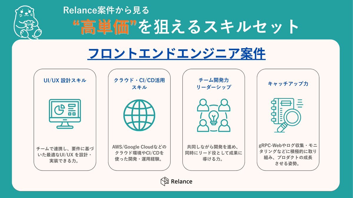 【フロントエンドエンジニアが“高単価”目指すには?】 以下の4つのスキルを総合的に伸ばすことが重要💡 技術力だけでなく、協働力や主体性も評価を大きく高めます🔥 ▼〈フリーランスエンジニアデビュー向け完全ガイド〉はこちら site.relance.jp/whitepaper-eng… #Relance #フリーランス #エンジニア pic.x.com/BSWvBSMpc9