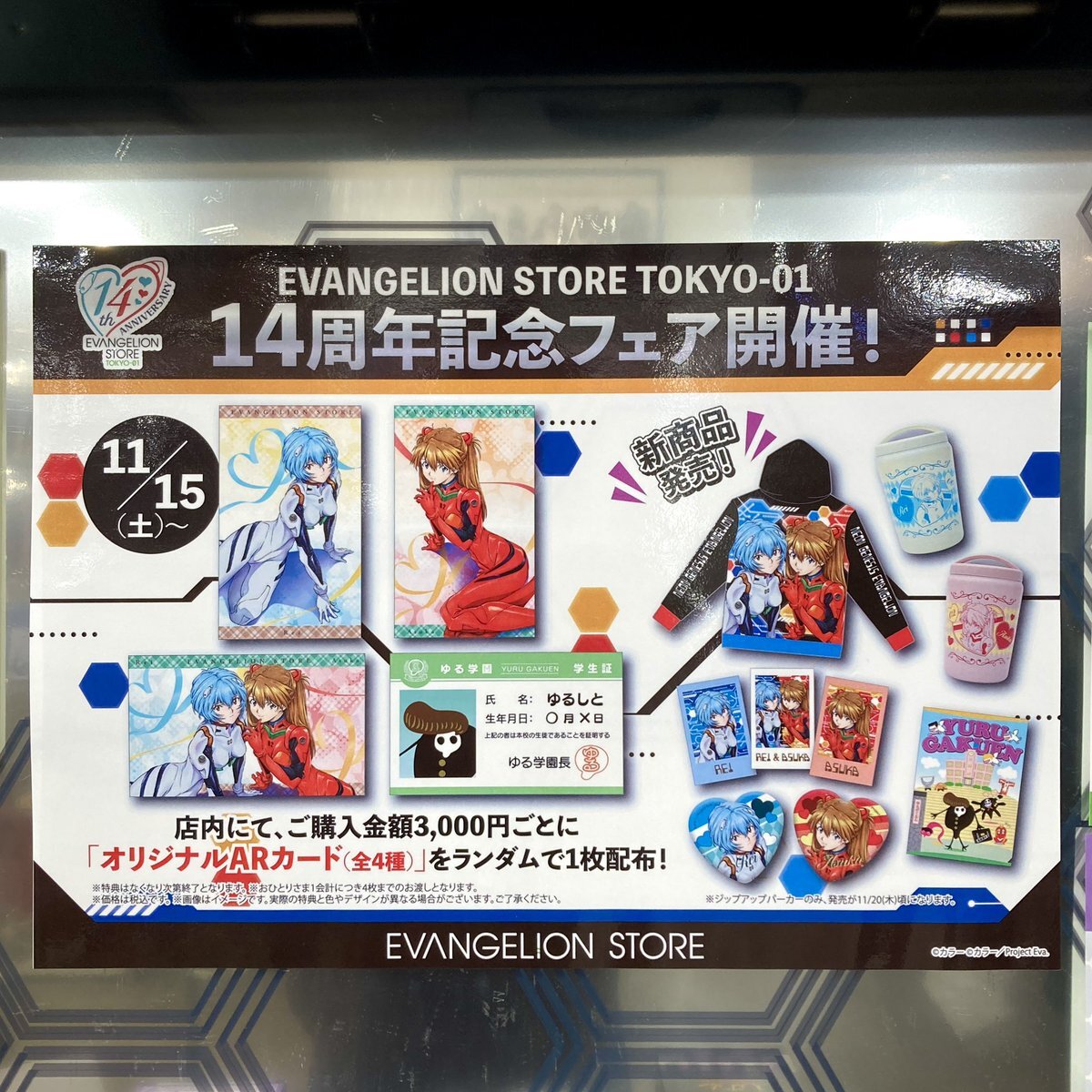 【TOKYO-01(池袋)】《フェア情報》 本日11月15日(土)より「EVANGELION STORE TOKYO-01 14周年記念フェア」開催✨ たくさんの新商品も本日より発売です❣️ 詳細はこちら⏬ eva-info.jp/25514 池袋へお越しの際は、ぜひ #エヴァストア へ🎶 pic.x.com/kg4M0c0JJM