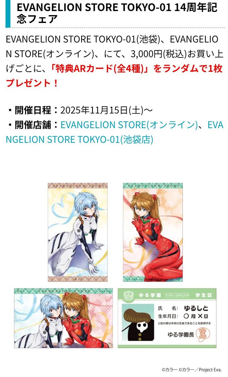 EVANGELION STORE TOKYO-01 14周年記念フェア開催!記念イラストを使用した新商品や「ゆるしと」グリーティングなど企画が盛りだくさん! eva-info.jp/25514 #evainfo