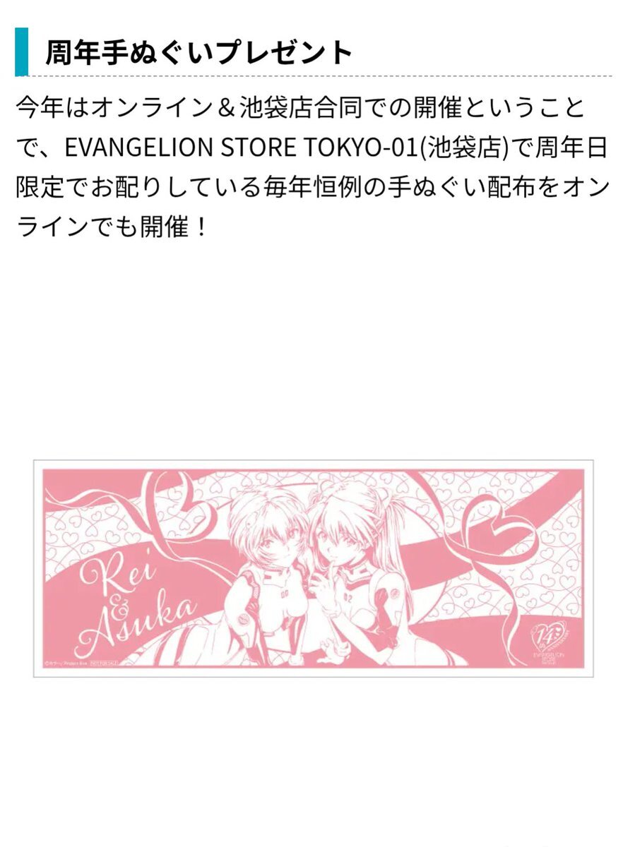手ぬぐいは今年もオンライン配布あるのありがたい🙏✨ #エヴァ情報 #エヴァストア14周年 pic.x.com/mzyJI3vGLS x.com/eva_informatio…