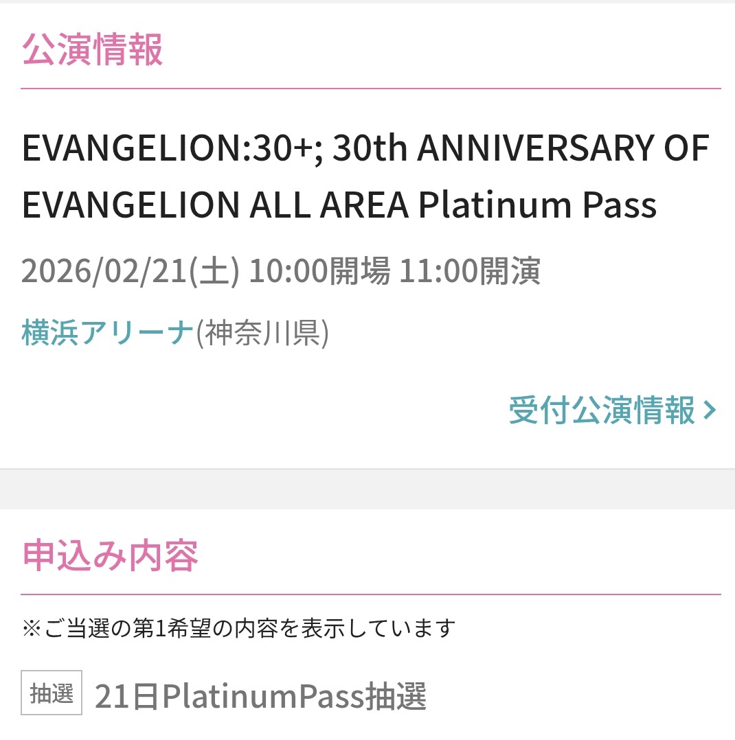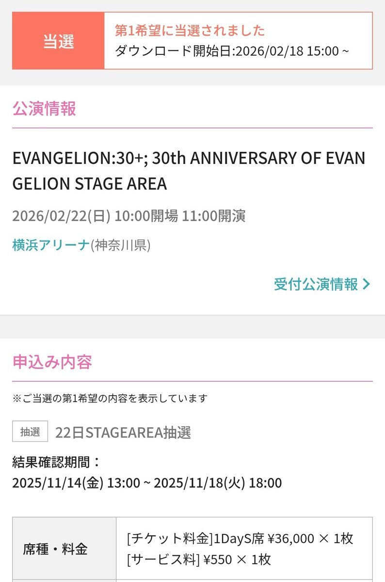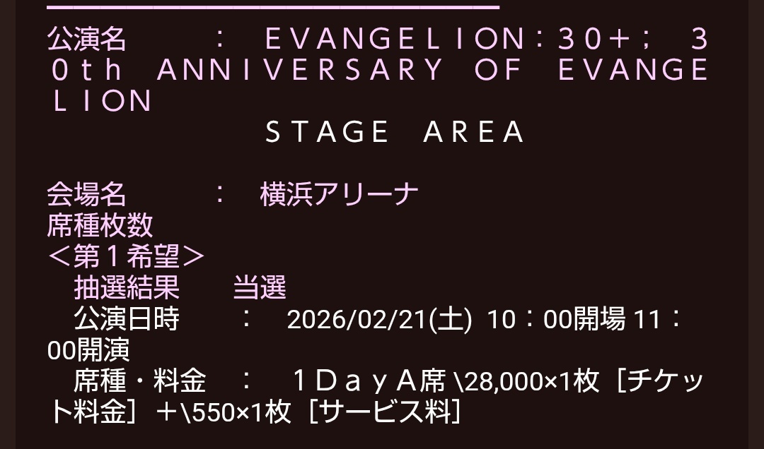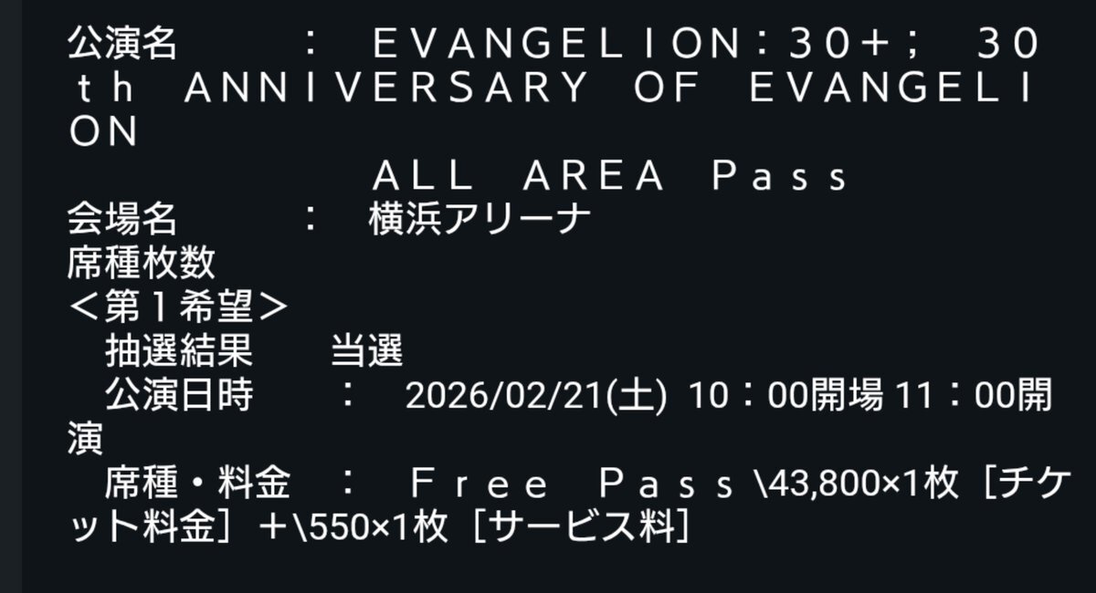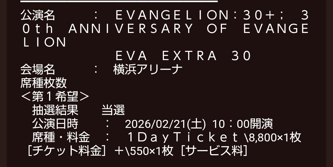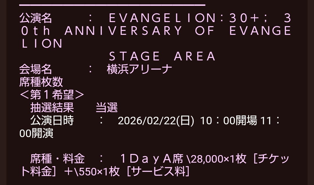 これって落選あるの?! それとも時間帯が遅かったから奇跡的に当選したのかな🥺 しかし2月は、横浜アリーナで楽しめるのが確約された。 全てはゼーレのシナリオどおり。 #エヴァフェス pic.x.com/gXQ3SxGNAQ