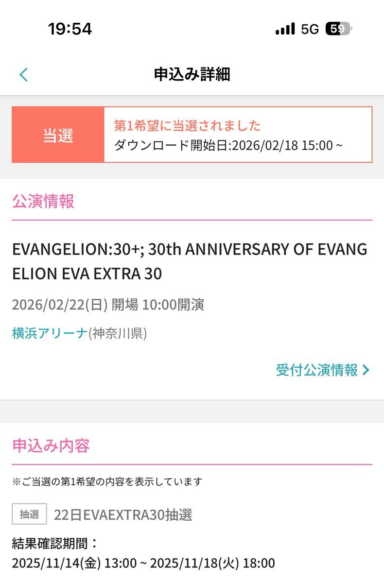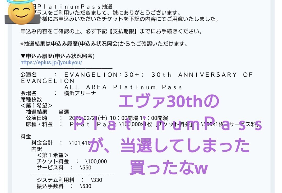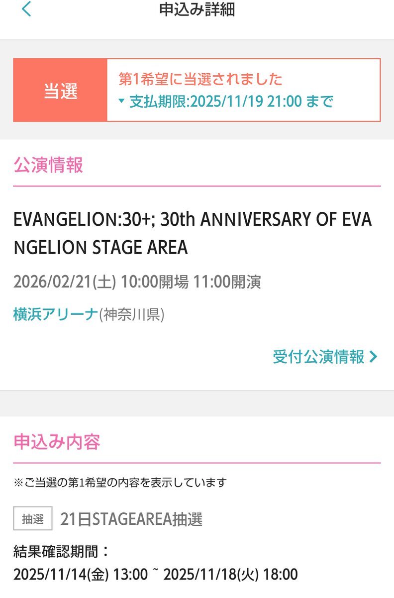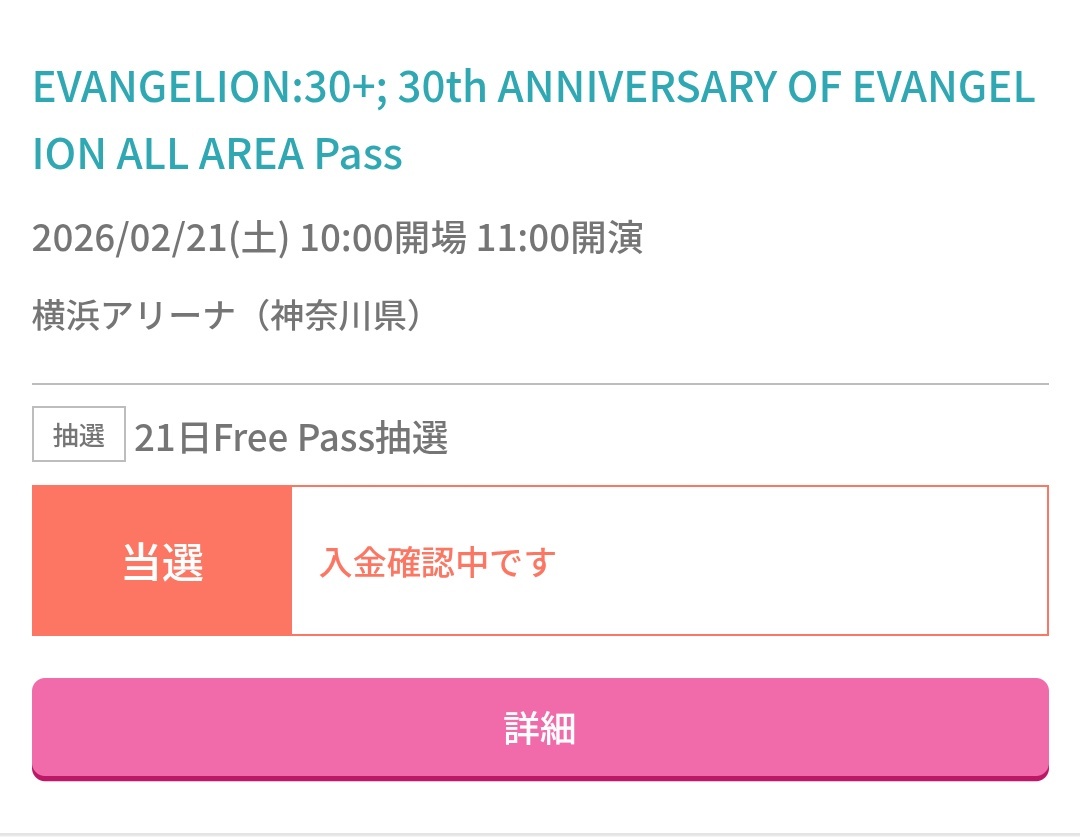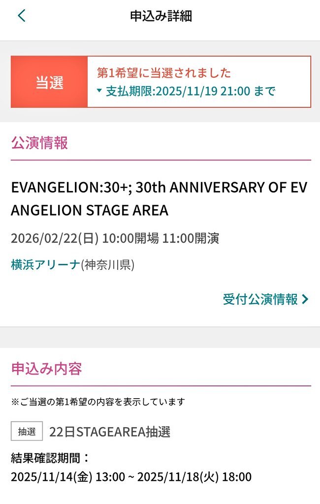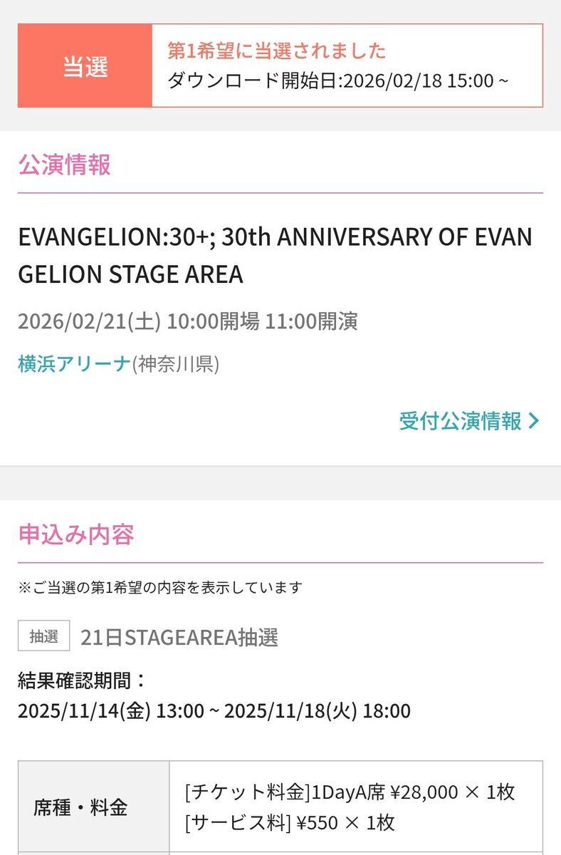 これって落選あるの?! それとも時間帯が遅かったから奇跡的に当選したのかな🥺 しかし2月は、横浜アリーナで楽しめるのが確約された。 全てはゼーレのシナリオどおり。 #エヴァフェス pic.x.com/gXQ3SxGNAQ