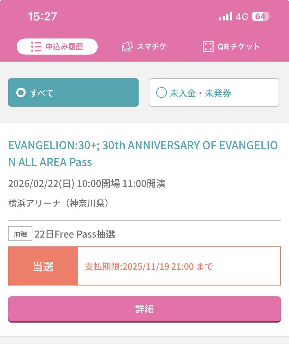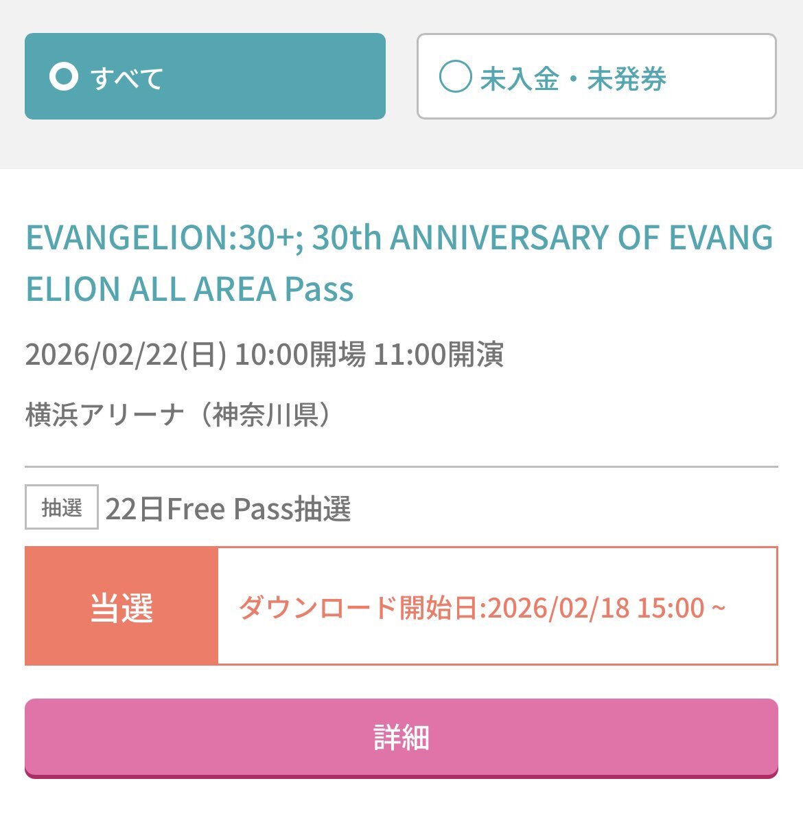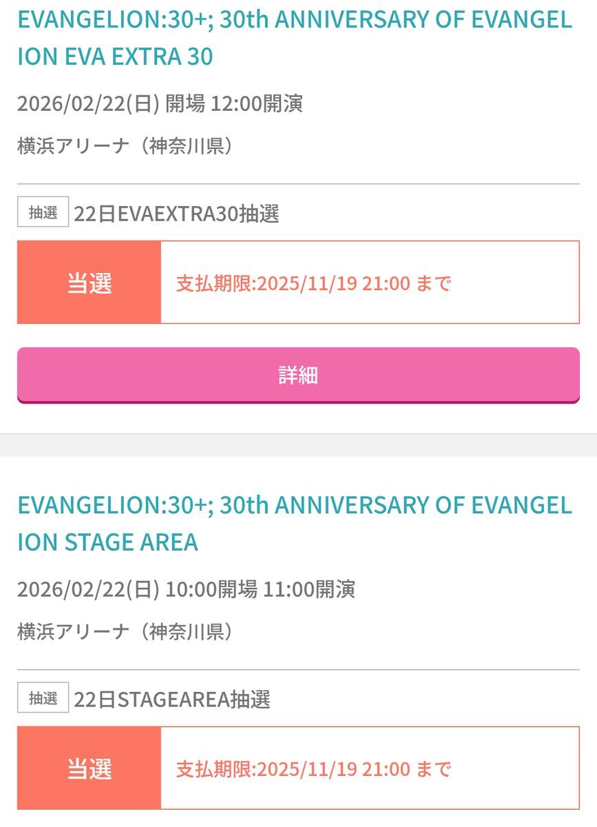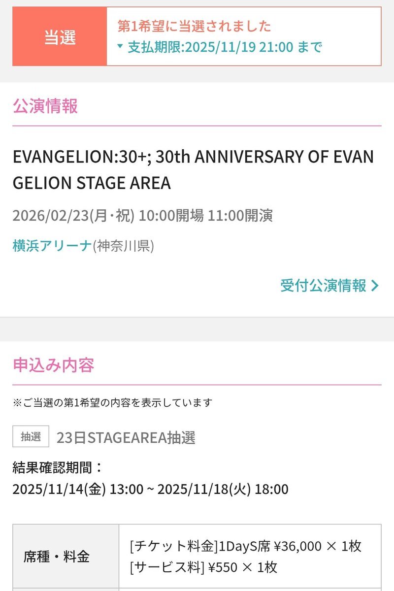 これって落選あるの?! それとも時間帯が遅かったから奇跡的に当選したのかな🥺 しかし2月は、横浜アリーナで楽しめるのが確約された。 全てはゼーレのシナリオどおり。 #エヴァフェス pic.x.com/gXQ3SxGNAQ