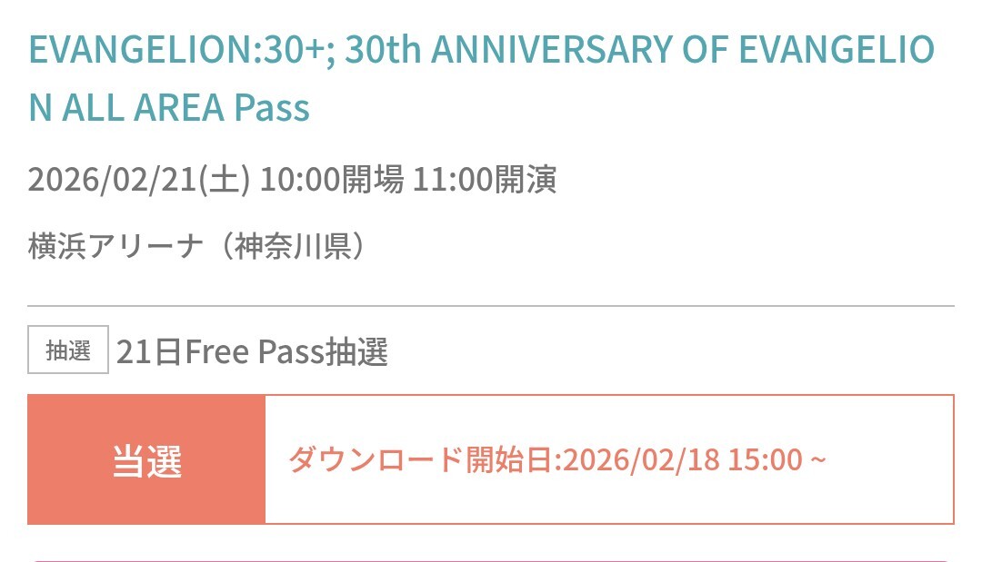 2026/2/21のエヴァフェス当選してましたヽ(´▽`)/ 真綾さんが出演する前からのエヴァファンとしては参加するしかないです! #エヴァフェス #エヴァ30 #エヴァンゲリオン #EVANGELION #VHSって知ってますか pic.x.com/iFrHVZev2h x.com/evangelion_co/…