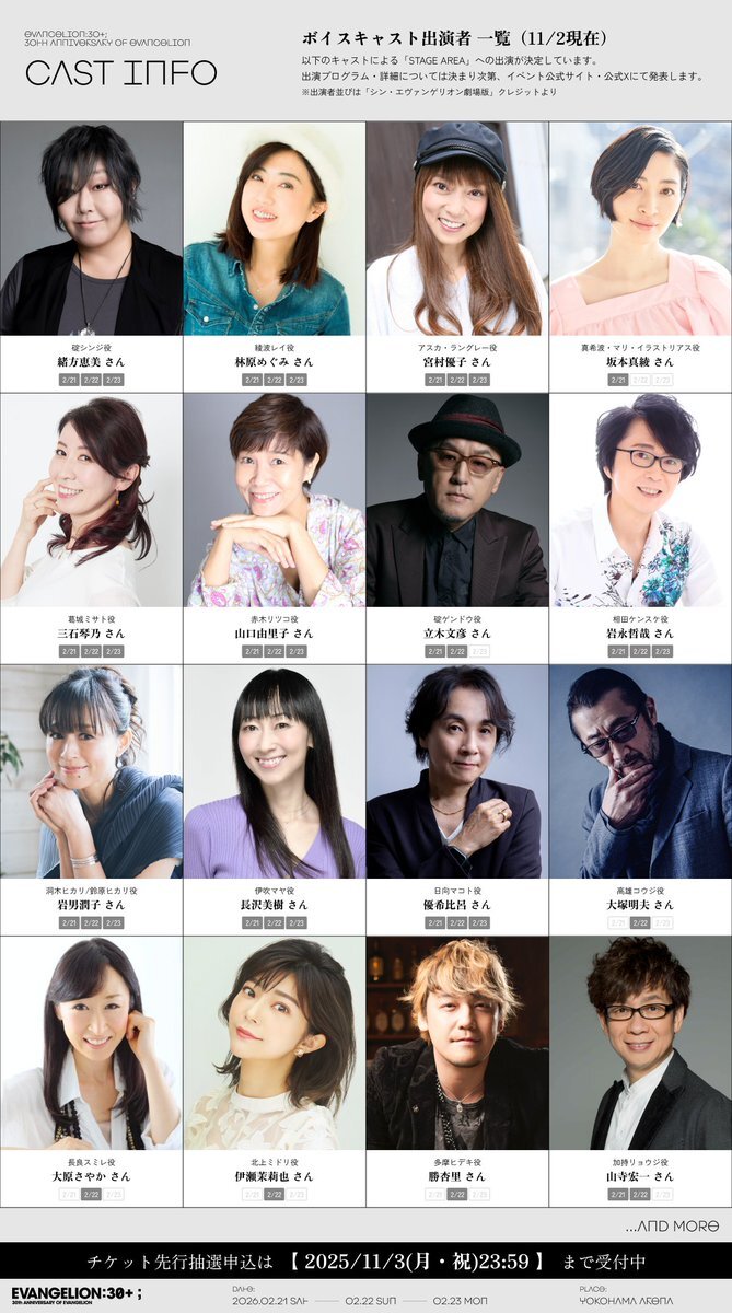 【ボイスキャスト出演者決定】 『#エヴァンゲリオン』シリーズ初となる30周年フェスイベント 「EVANGELION:30+;30th ANNIVERSARY OF EVANGELION」 大塚明夫さん(高雄コウジ役)が2/22(土)「STAGE AREA」に出演決定! 本日時点で「EVANGELION:30+;30th ANNIVERSARY OF EVANGELION」 「STAGE x.com/evangelion_co/…