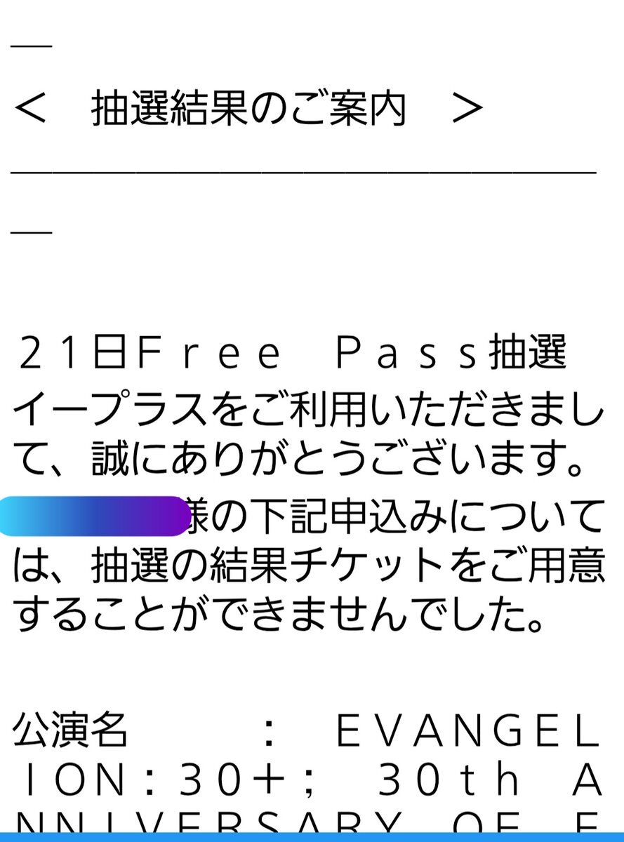 一般販売は29日から✨ でもね… "ALL Area FreePass" 全日間申し込んで 全て落選の自分がいるって事は… 少なくとも"ALL Area FreePass"は 一般販売が無いの確定だよね… ※←に先行で完売した場合~て記載あるし 一般販売分と席を分けての販売は して無いって事だと思うし #エヴァフェス #エヴァ30 pic.x.com/WFZVzawwh1