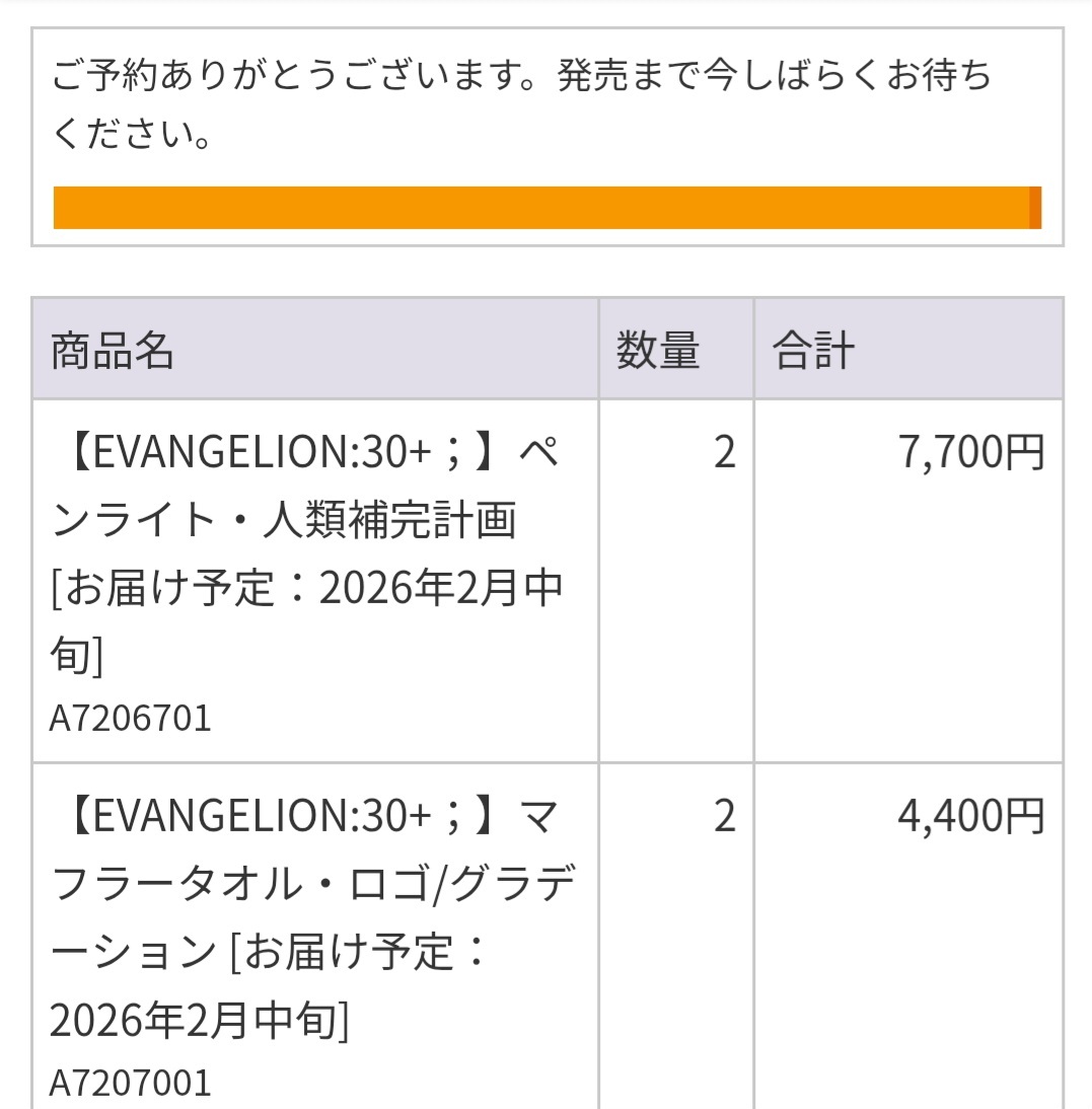 【EVANGELION:30+; 事前通販まもなく終了!】 事前通販受付は、明日11月17日(月)23:59まで! ぜひこの機会にお買い求めください! 特設サイト:evastore.jp/shop/e/eevange… 受付期間:~11月17日(月)23:59まで お届け時期:2026年2月中旬頃を予定 #エヴァフェス #evafes #エヴァ30 #エヴァストア pic.x.com/reLOg27Xp1