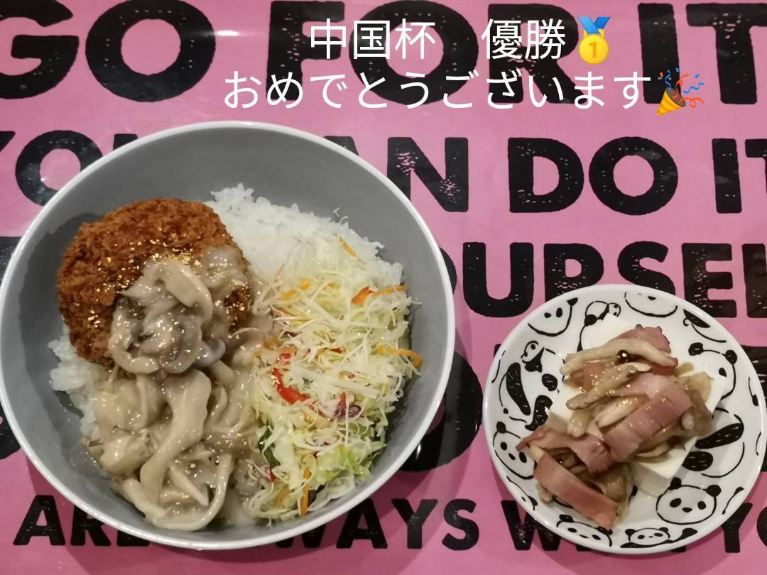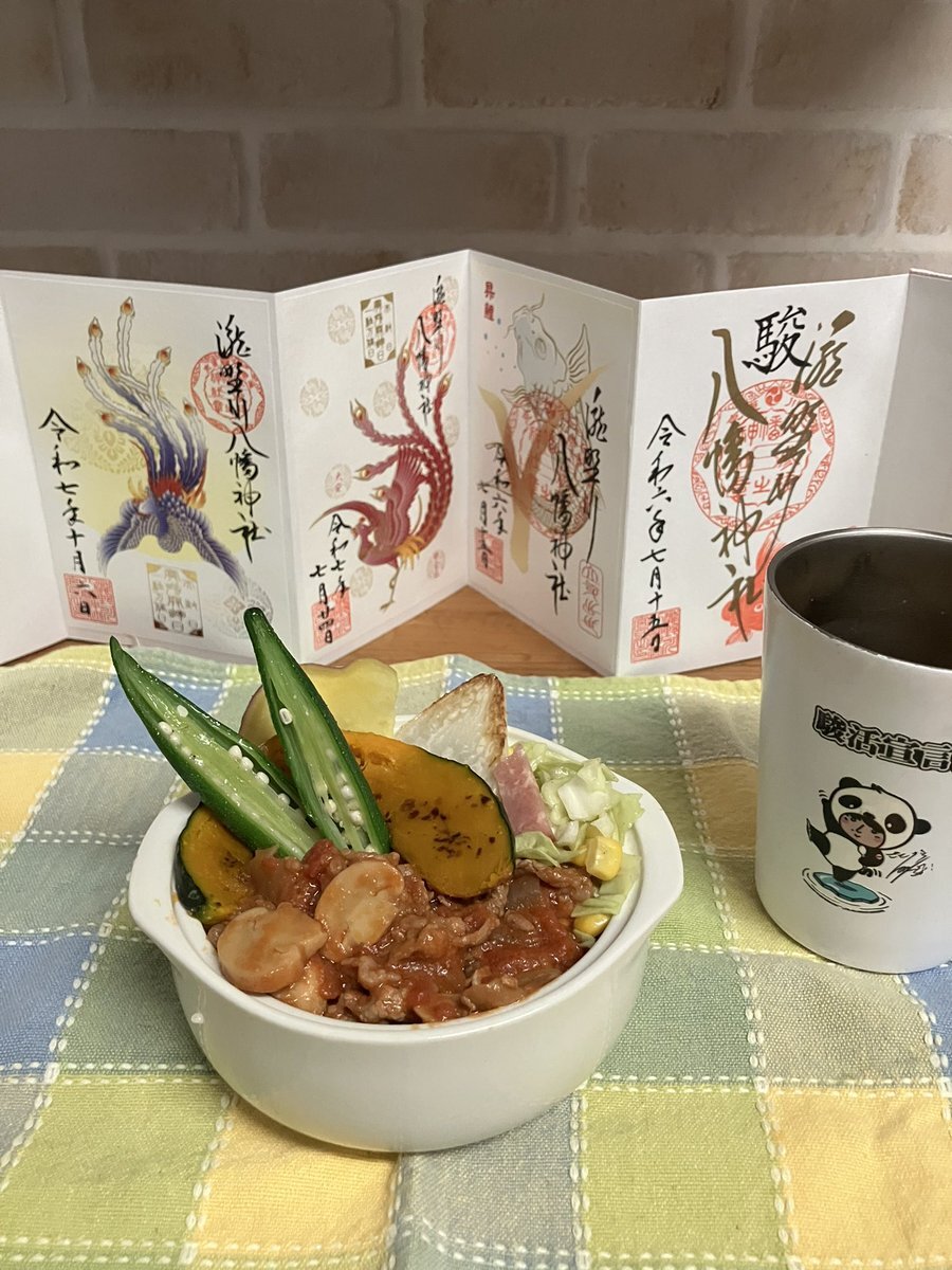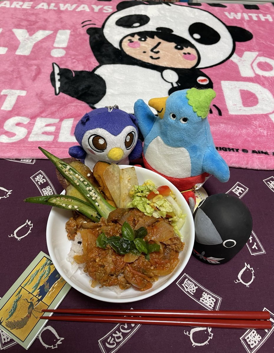 焼きカツ」カレー🍛 四種類の野菜乗せです ルッツとアクセルも揃えました 自国開催のグランプリシリーズ🇯🇵 たくさんの声援を💪 駿くんらしく 出しきれますように🐼🌈🪻🐦🔥✨ #佐藤駿 #エームサービス #明治大学 #作って応援 #NHK杯フィギュア pic.x.com/lqnzRkM10I
