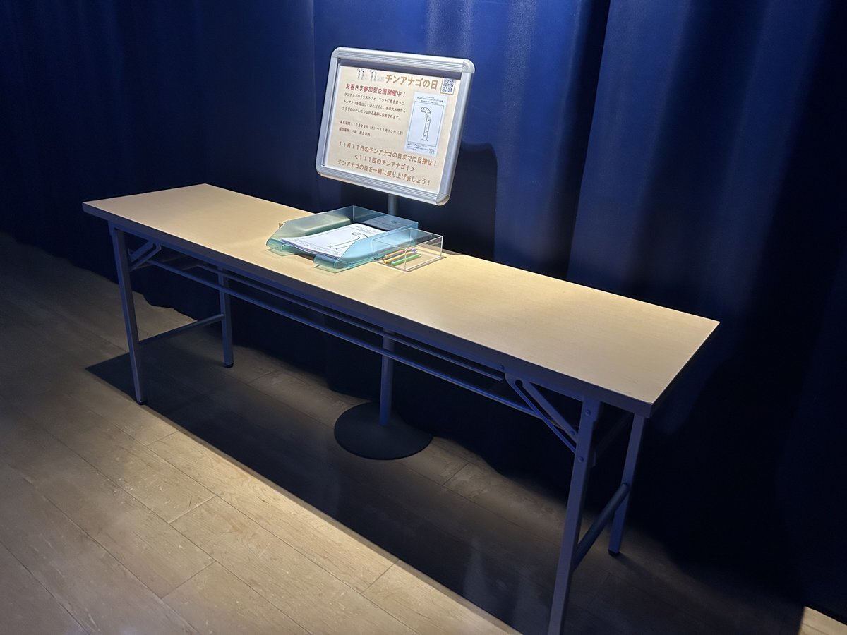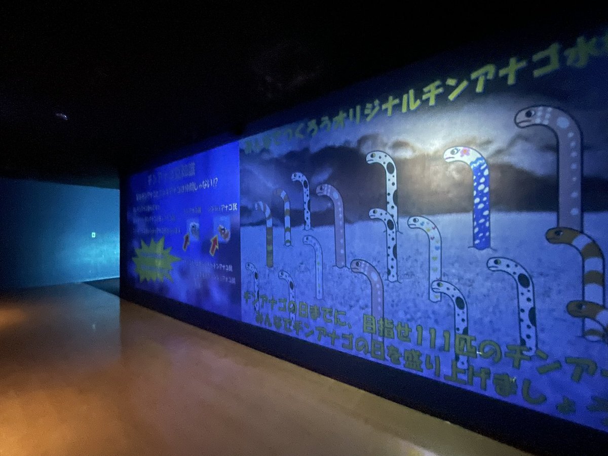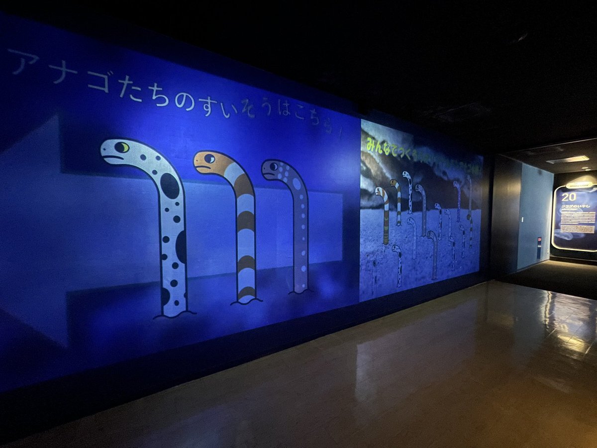 現在までに、11匹のチンアナゴを提出していただきました!!!! 目標の111匹まで、あと100匹!!! 投影している2階クラゲ通路にて、描けるコーナーも設置いたしましたので、みなさまぜひ!!ご参加ください!!