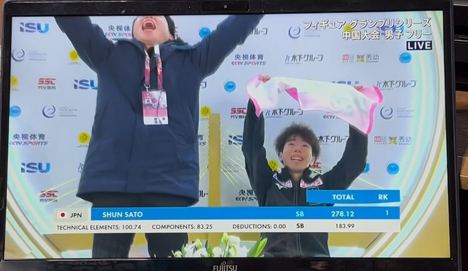 なんとオリンピック公式さんのインスタでも、中国杯で優勝が確定した時の日下先生の荒ぶりと「出し切った」駿君が😊 #佐藤駿 #ShunSato #エームサービス instagram.com/p/DQUNGCMAk-7/…