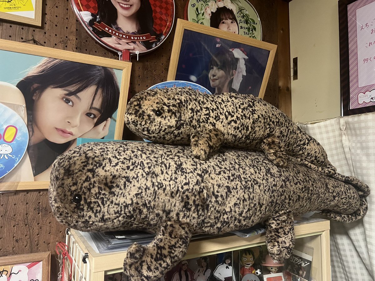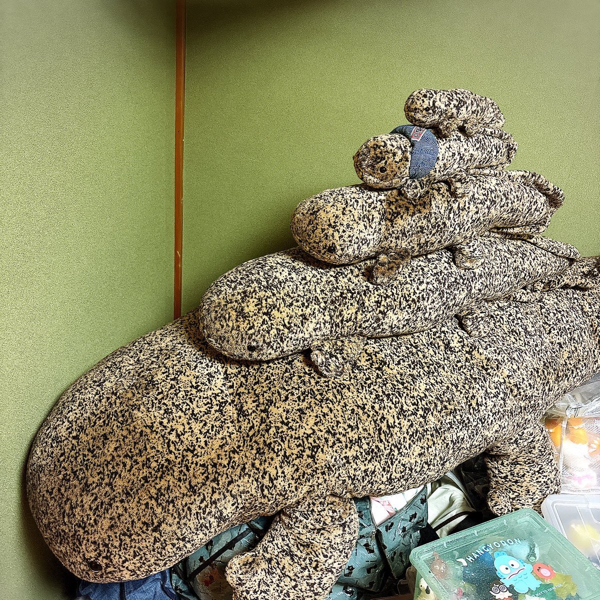 京都水族館限定のオオサンショウウオぬいぐるみ、ついにサイズコンプリート✨ 超でかいものからかわいいサイズまで! 西陣織も写真じゃ伝わらないけど キラキラしてて綺麗! オオサンショウウオぬいぐるみ、ふわふわしてておすすめ✌️✨ #オオサンショウウオ @Kyoto_Aquarium pic.x.com/iYup0mzl3M
