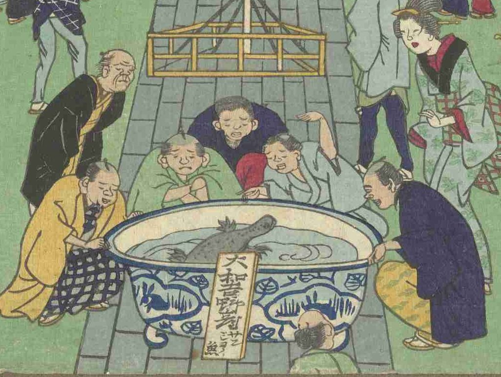 明治5年(1872)、文部省博物局による最初の博覧会(湯島聖堂博覧会)が開催されました 画面中央下の大きな鉢にいるのは、#オオサンショウウオ モレラ岐阜では、ただいまサテライト展示中🦎 ←ぜひご来場ください。 出典:元ト昌平坂聖堂二於テ博覧会図 pic.x.com/m2yBYYaXKw x.com/maleragifu_/st…