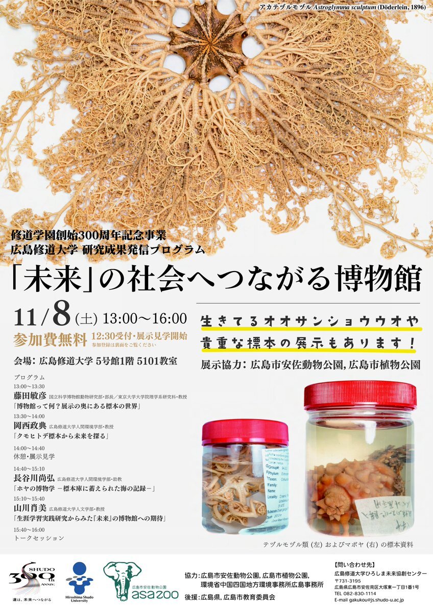 今週,11月8日(土)12時30分〜広島修道大学で「未来の社会へつながる博物館」を開催します.かっこいいテヅルモヅルチラシを作ってもらいました! 入場無料,どなたでも参加OK。 詳細👉 shudo-u.ac.jp/event/20251108… #広島修道大学 #博物館 #オオサンショウウオ #テヅルモヅル pic.x.com/7wh0et4cBx
