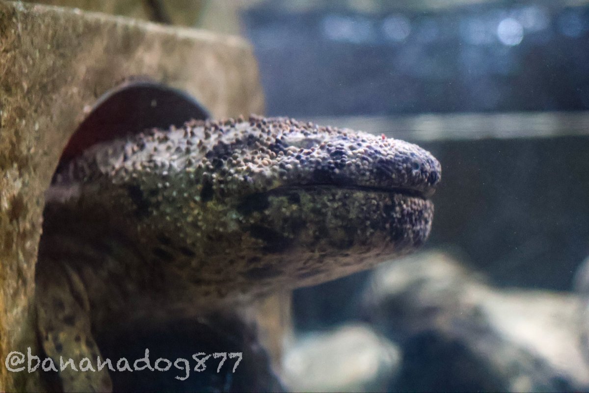 最後に呼吸しようとする #オオサンショウウオ を眺めて撤退する とにかく子供だらけだったね、凄くわかる 大人でも楽しいもんここ #足立区生物園 (先週月曜日撮影) pic.x.com/PE8w44sGAP