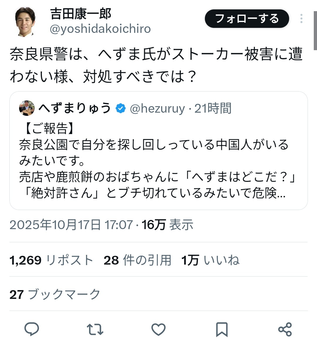 返信先:@yoshidakoichiro#いやそのりくつはおかしい 高度すぎるギャグで笑わすなよ(@∀@) ※そもそもへずまをつけてるのが警察官という可能性もある。 #オタクだからこそ基本的人権を守る pic.x.com/Cp0GuxbQWd