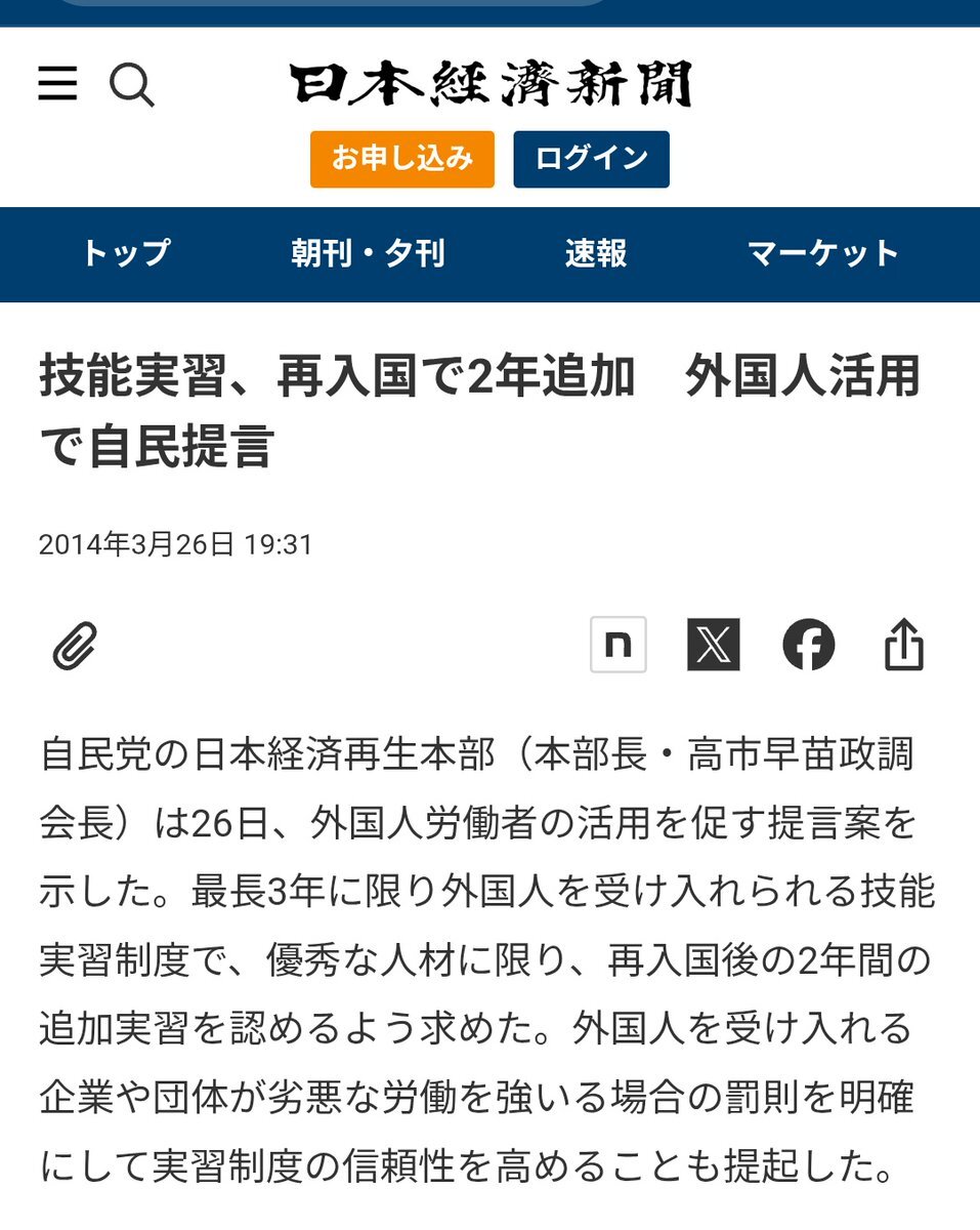返信先:@nihonpatriot▼#いやそのりくつはおかしい ❌️高市早苗「移民はいったんゼロベースで考えるつもりです」 ⭕️(@∀@)つ【2014年】自民党日本経済再生本部(本部長・高市早苗)は…外国人労働者の活用を促す提言案を示した。nikkei.com/article/DGXNAS… お前かよwww #オタクだからこそ政治を批判する
