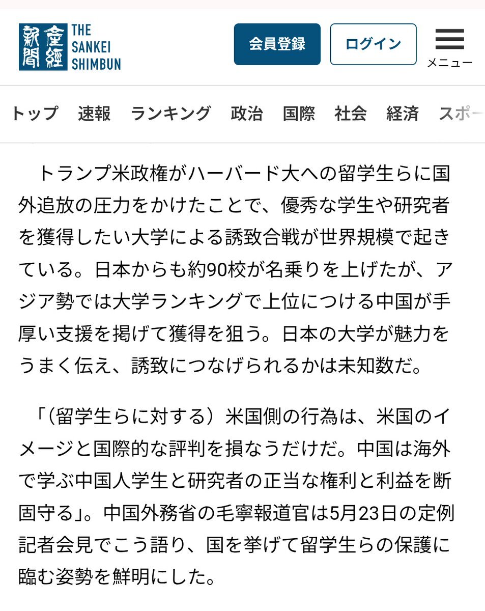 返信先:@Hongnumongol991#いやそのりくつはおかしい 日本の自民党のアホ議員が外国人留学生をいじめればいじめるほど、中国の大学がレベルアップするようだ (@∀@)つ【現実】≫ハーバード大生の獲得競争は世界規模 躍起の中国「厚遇攻め」 sankei.com/article/202506… #オタクだからこそ基本的人権を守る pic.x.com/58jWHckPyg