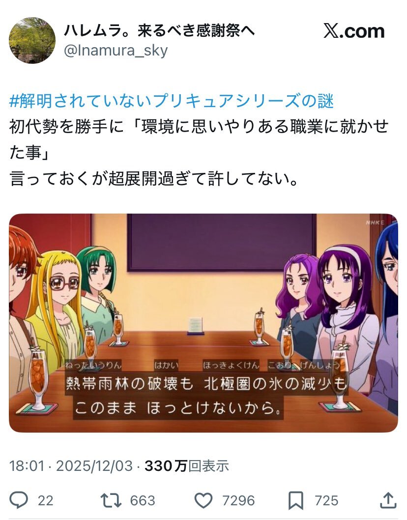 プリキュアの設定にブチギレてるオタクの主張、「作品に『思想』を持ち込むな」論の典型例だと思う #オタクの社会性の問題 pic.x.com/YH9v883zrs x.com/konaske/status…