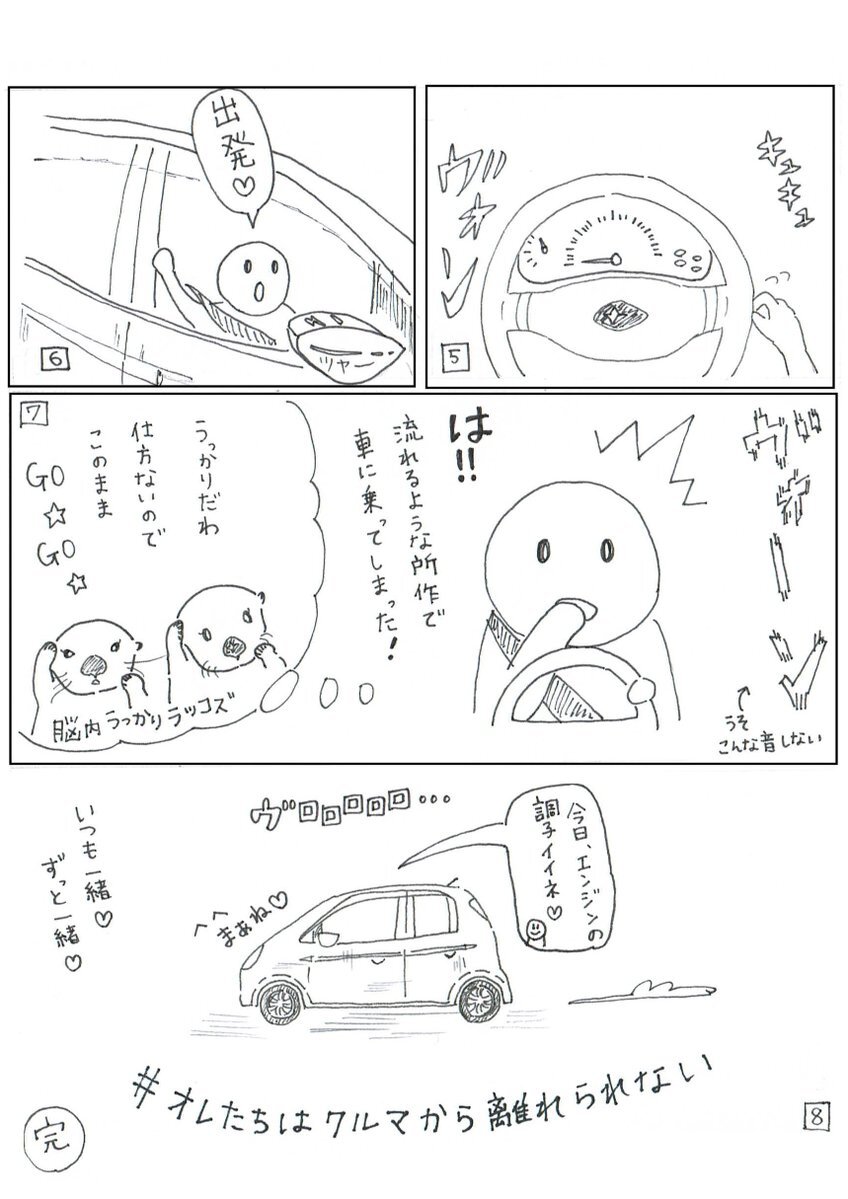 ある日の私の話 離れられない!! 編 今回はラッコのお話ではなく私の話です。(1コマだけラッコ出演あり) #昴と彗星 に自分の愛車がでてくる事を夢見ています♡ダーリンの足車とかにいかがでしょうか、しげの先生! 無理か(笑) #オレたちはクルマから離れられない 左→右 pic.x.com/Zfqz5ez0iG