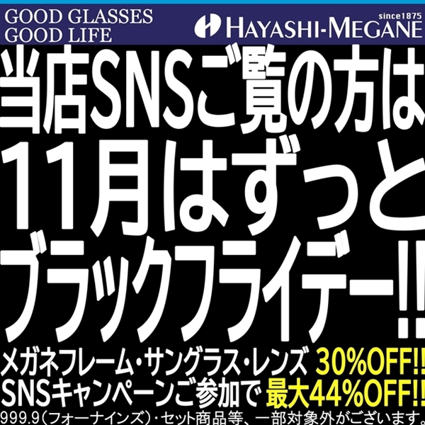 このポストをスマホで提示されると、 11月はずっと ブラックフライデー!! メガネフレーム・サングラス・レンズ 30%OFF!! ハヤシメガネSNSキャンペーンご参加で最大44%OFF!! ※999.9(フォーナインズ)・セット商品等 一部対象外がございます。 hayashimegane.jugem.jp/?eid=4314 山口県防府市 #ハヤシメガネ x.com/hayashimegane/…