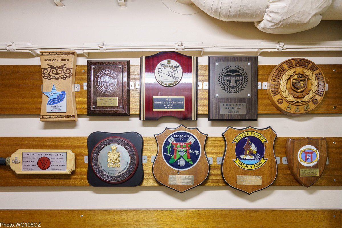 うらが艦内へ 格納庫は大型ヘリを格納できる設計だが現在は各種掃海具の置場に使っているとか何とか。造船は日立造船(現カナデビア)が造船していた頃のものなんですね。4枚目はかつて使われていた大型ヘリを出し入れする器具なんだと。しらせのスリングで固定されていました。 #オータムフェスタ2025 pic.x.com/O9m6JjKMlN