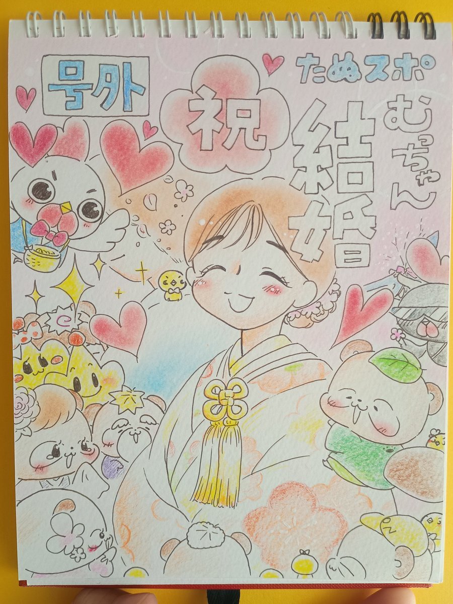おはようございます☀ 着色できました〜💕💕💕 スペシャルゲストを二人ご招待しておきました🦝💐✨ #krydoyo #武藤ひさこ #秋山幸輝 #スペシャル回 #結婚 #おっしゅおっしゅ #カスミソウ の花言葉は祝福✨ pic.x.com/jHspboV1Bg