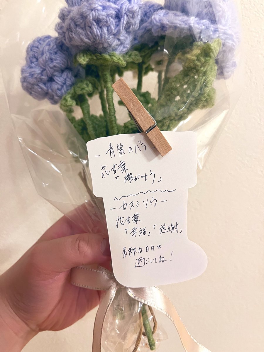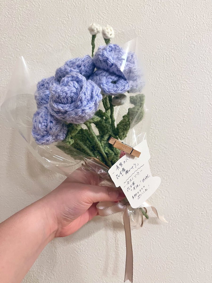 ともだちに金曜日渡すやつ!!できた!! #編み物 #花束 #薔薇 #カスミソウ #花言葉 pic.x.com/luk8DdFDEz