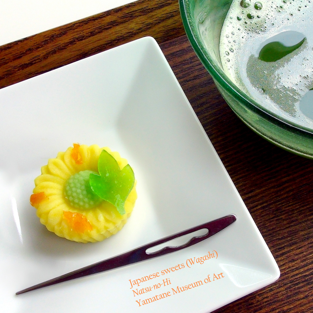 #江戸の人気絵師展 オリジナル和菓子「夏の日」 鈴木其一《四季花鳥図》(右隻)に描かれた、夏の日差しをいっぱいに浴びて咲く向日葵をモティーフにしました。 杏入りの練切りは、ほのかに甘酸っぱい仕上がりです。 #山種美術館 #カフェのある美術館 pic.x.com/YO6TjeHTVt