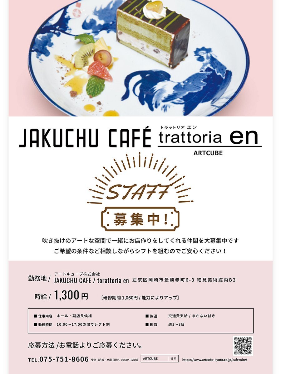 ◤JAKUCHU CAFÉ スタッフ募集中◢ 細見美術館 地下2階のミュージアムカフェで一緒にお店づくりをしてくれる仲間を募集中です。 ご希望の条件など相談しながらシフトを組むのでご安心ください! #カフェのある美術館 #スタッフ募集 artcube-kyoto.co.jp/cafecube/ pic.x.com/M4oFiyjKOG