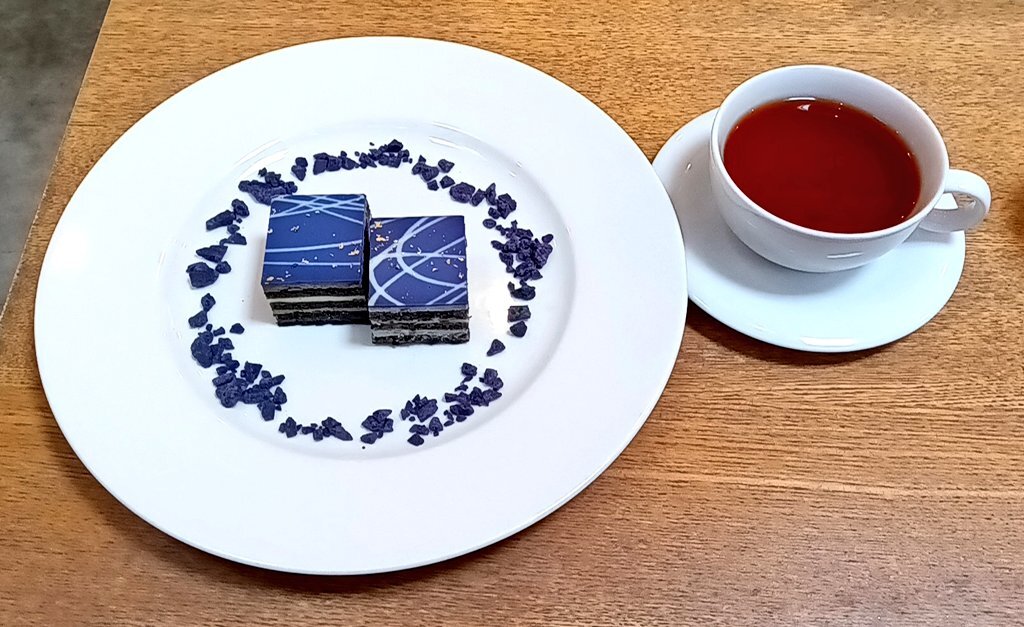 今日のスイーツ ウサギノネドコ ラピスラズリのオペラ 紅茶 美味しかった〜 ごちそうさまでした! #京都 #二条 #西大路御池 #カフェ #スイーツ #カフェのある美術館 pic.x.com/S8JS4mvycw
