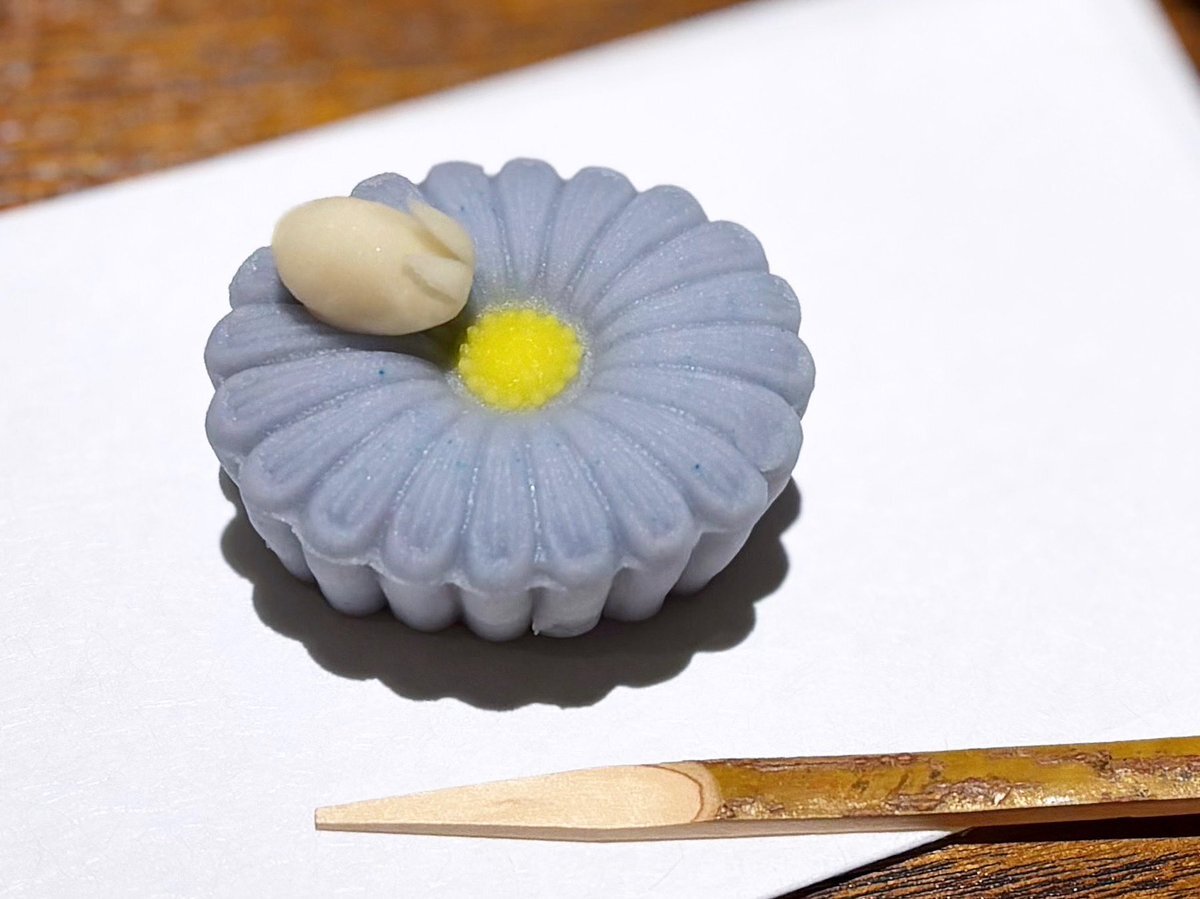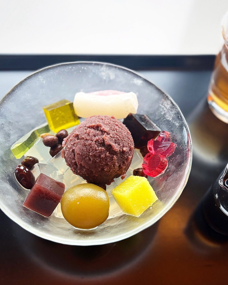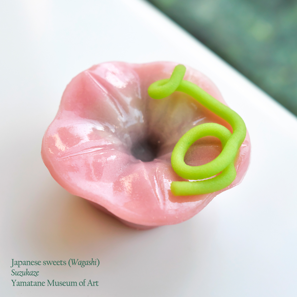 #江戸の人気絵師展 オリジナル和菓子「涼風」 練切りをつややかな寒天で包み、夏盛りの朝、露に濡れた朝顔をイメージ しました。菊家特製のこしあん入りです。 #山種美術館 #カフェのある美術館 pic.x.com/x3MrQkbeo4
