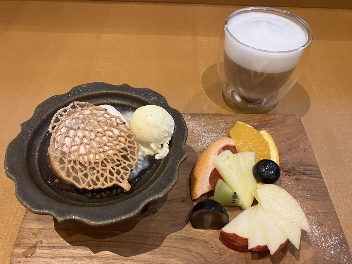 菊池寛実記念智美術館のカフェも初めて入れた。窓際も良いけど一人席も高くなっててパノラマでお庭が眺められる。席もゆったり。プリンも美味しかった。シフォンケーキもフルーツソースたっぷりのクレープも注文してる人がいて美味しそうだったな。 #カフェのある美術館 pic.x.com/hSlrrmAfPq