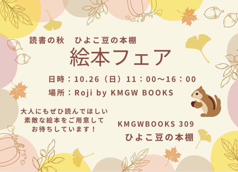 《お知らせ》 10月26日(日)11時〜16時まで #Roji にて小さな小さなフェアを開催。 子どもだけでなく 大人にも、大人にこそ 絵本を読んで頂きたいという ひよこ豆の夢を叶える企画! まだまだこれから準備。 ぜひぜひ、お越しください😊 #KMGWBOOKS #カマガワ #釜川 #絵本 pic.x.com/Tdh49Pmf2o