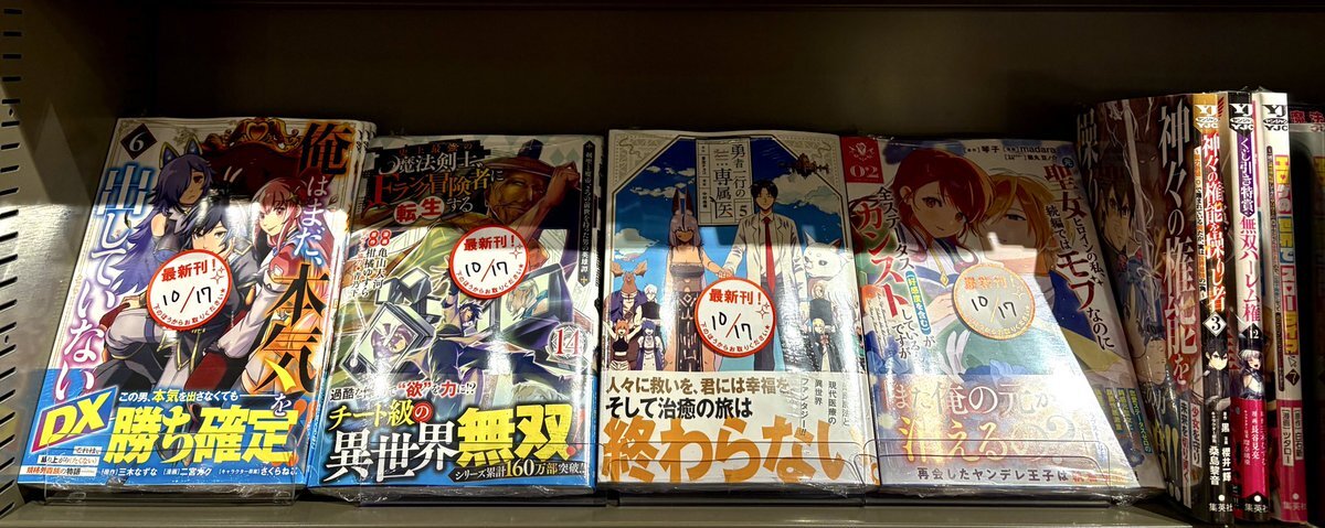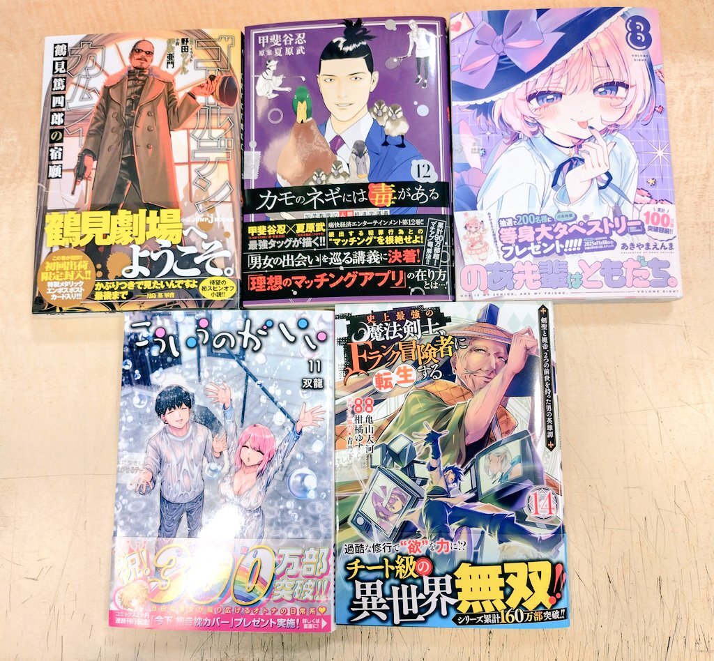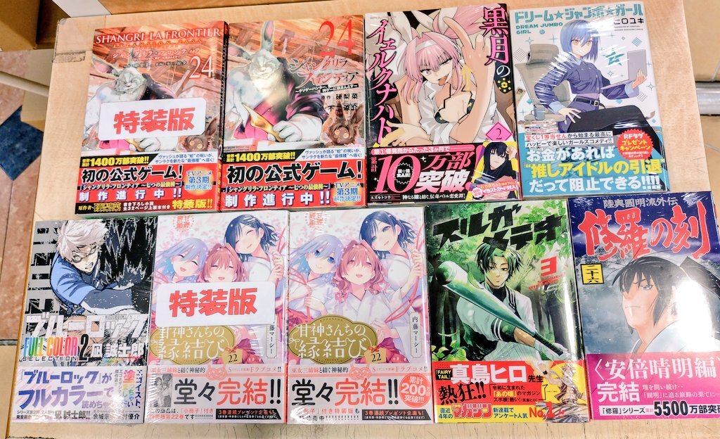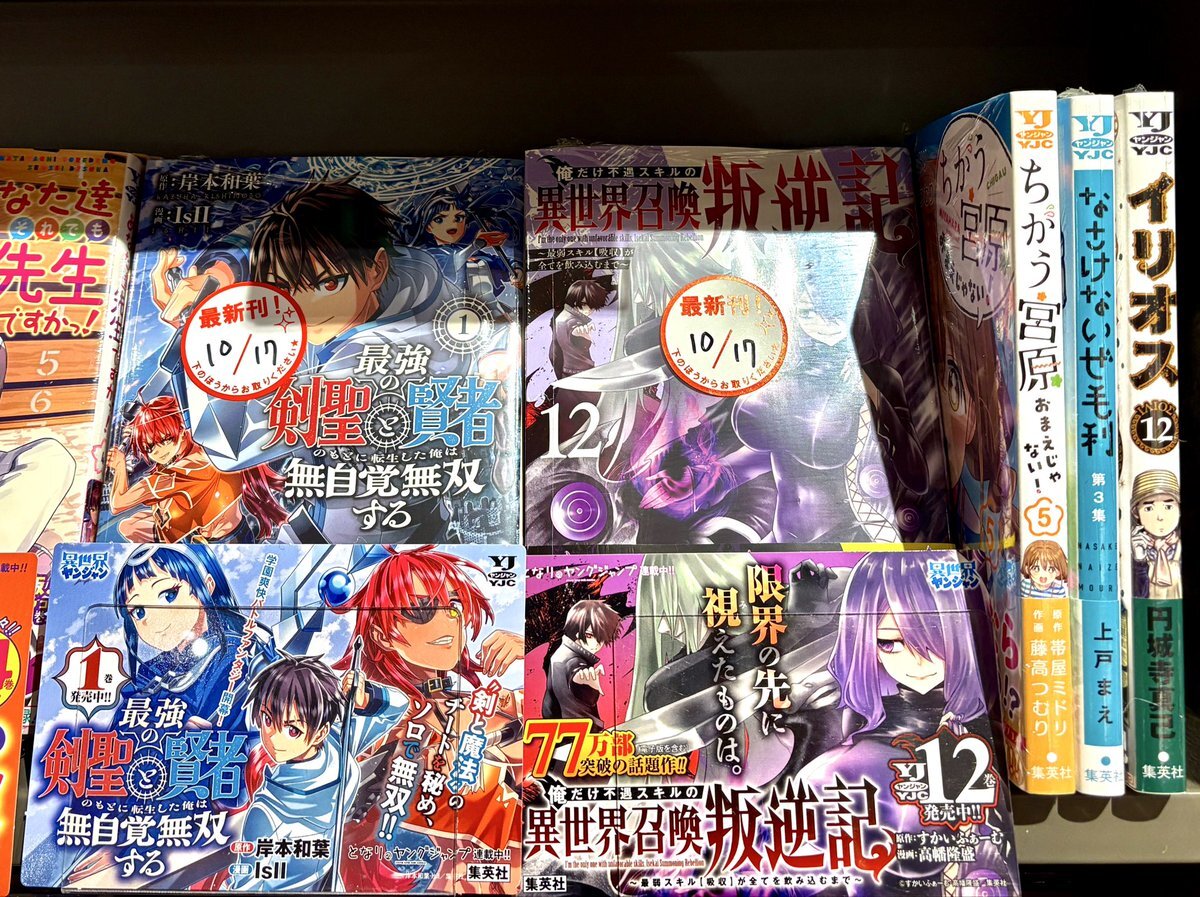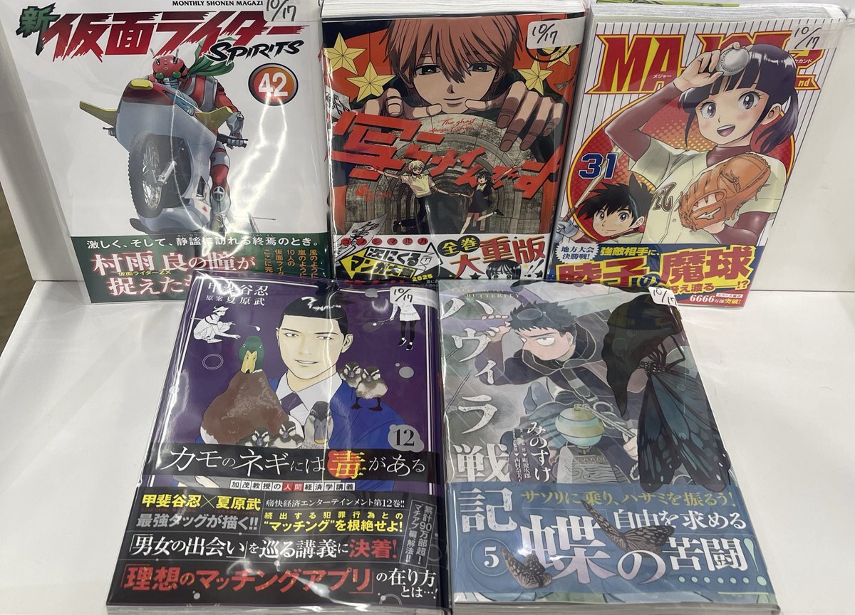 本日の新刊コミック④です😅 #OHMYGOD (5) #制裁学園 (8) #ハボウの轍 (4) #カモのネギには毒がある (12) #黒月のイェルクナハト (2) #新仮面ライダーSPIRITS (42) #シャングリラ・フロンティア (24) 皆さまのご来店をお待ちしております! #自遊空間 #荻窪 pic.x.com/IKpteBHNTv