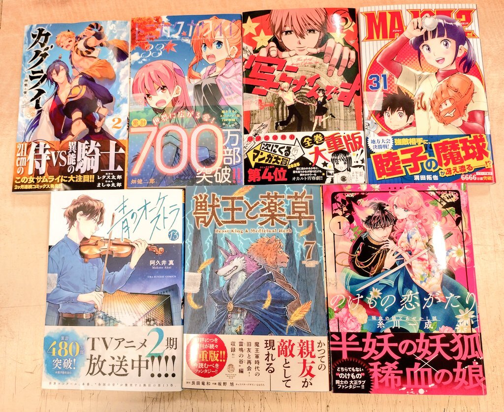 本日の新刊(大量)!『#キングダム』77巻、『#カモのネギには毒がある』12巻、『#こういうのがいい』11巻、『#シャングリラフロンティア』24巻、『#青のオーケストラ』13巻、『#写らナイんです 』6巻、『#MAJOR2nd』31巻、他多数! pic.x.com/S58k6THpCW