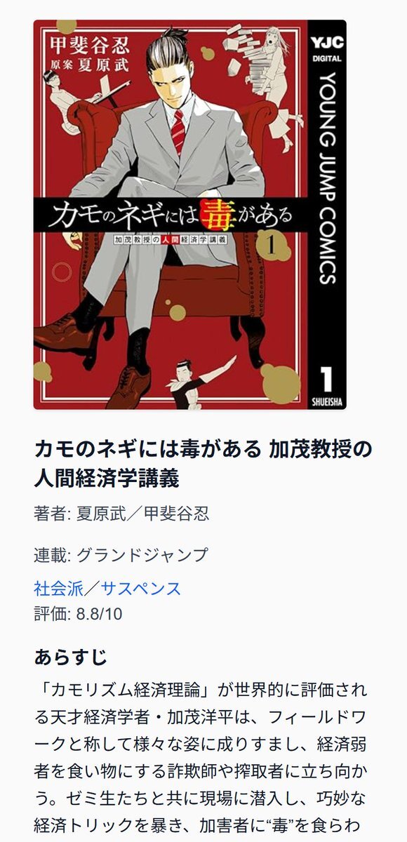 カモのネギには毒がある 加茂教授の人間経済学講義 変人教授が詐欺と搾取の闇を暴き毒を返す… 詳細なあらすじや評価点数も確認✨ #カモのネギには毒がある 加茂教授の人間経済学講義 #グランドジャンプ mangayoshiashi.com/manga/ec72ce49… pic.x.com/VYcSzJ2Hld