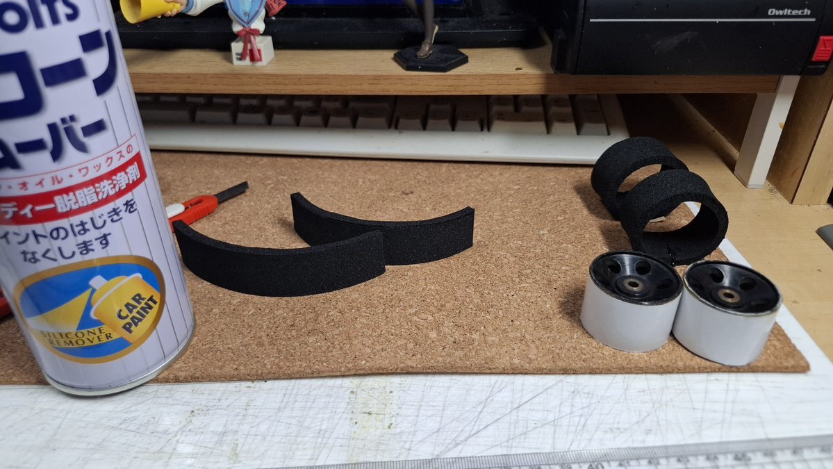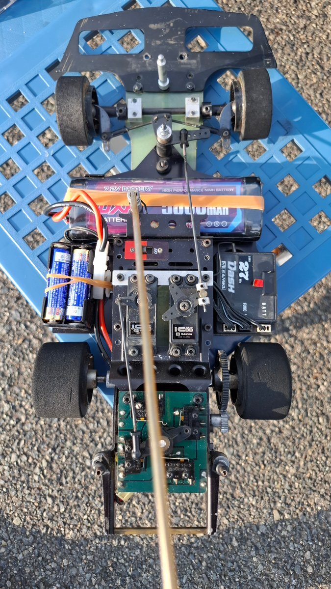 (マネージャー)11/09 僕の #青柳金属工業 #AYK #BIGRX1200 #アルピーヌルノーA442B はモーターがアクスル後にあるのでテールヘビー気味&前輪がカチているのでまったく曲がらない。なのでグリップ過多ではあるが、#前輪 に #カワダ模型 の #P を巻いてみる。少しは #コーナリング 改善するか? pic.x.com/vqI3yWmpKz