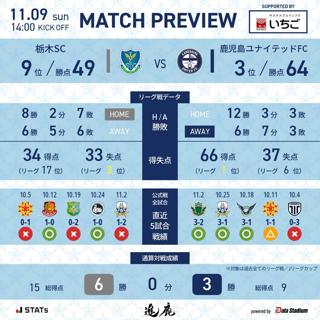 【J3第35節 #栃木SC 】 📊鹿児島ユナイテッドFC詳細データ 🏆明治安田J3リーグ 第35節 🆚#栃木SC 🗓11/9 14:00キックオフ 🏟#カンセキスタジアムとちぎ #鹿児島ユナイテッドFC を見るなら #DAZN または #Lemino で📺 DAZN⏬ kufc.co.jp/dazn/ Lemino⏬ lemino.docomo.ne.jp/search/event-t… #進鹿 pic.x.com/yAg3a2xgYp