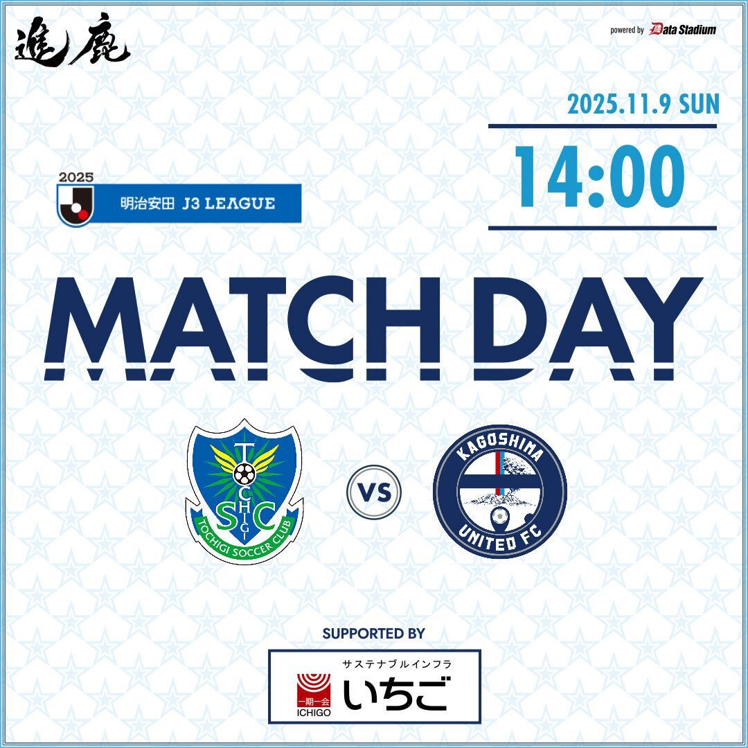 本日はMATCH DAY⚽️ 🏆明治安田J3リーグ 第35節 🆚#栃木SC 🗓 11/9 14:00キックオフ 🏟#カンセキスタジアムとちぎ 必ず勝利を掴み取りましょう🔥 それぞれの場所から熱い応援よろしくお願いします‼️ #鹿児島ユナイテッドFC #進鹿 #栃木SC鹿児島 pic.x.com/fmLYK6tWak