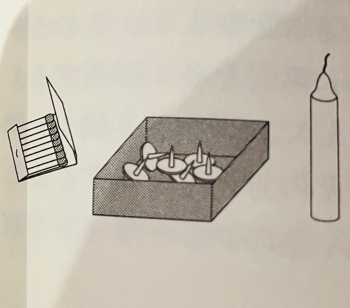 問題です。蝋燭を溶かさず、垂れた蝋燭の雫でテーブルを汚す事もなく、蝋燭を壁に取り付けて下さい。 #カードゲームで本当に強くなる考え方 amzn.asia/d/eEpeVNx pic.x.com/15qVoHCxTV