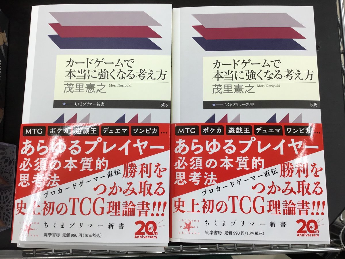 品切れしておりました『#カードゲームで本当に強くなる考え方』が再入荷しました! 2階の #トレカステーション 前にも特設コーナーあります!(お会計は1階レジにてお願いいたします) プレイヤーは必読の書です! #茂里憲之 #筑摩書房 #ちくまプリマー新書 pic.x.com/Aj9CPxILpH
