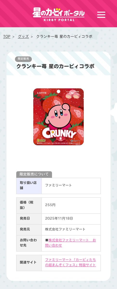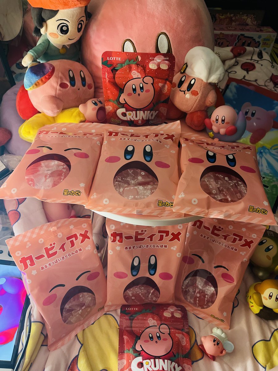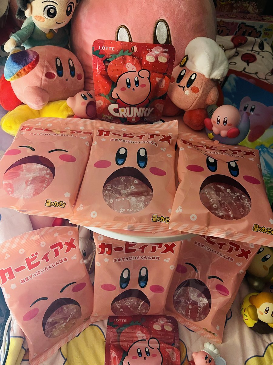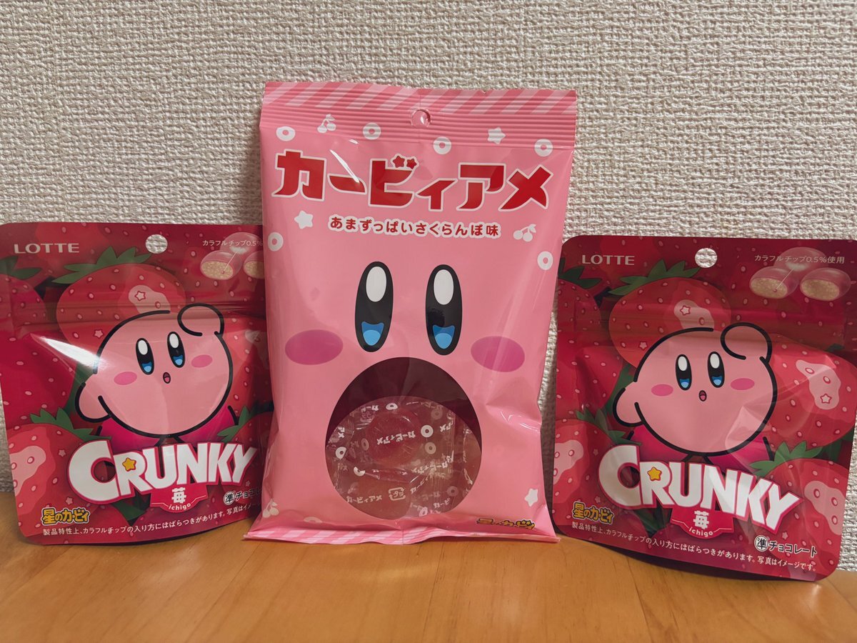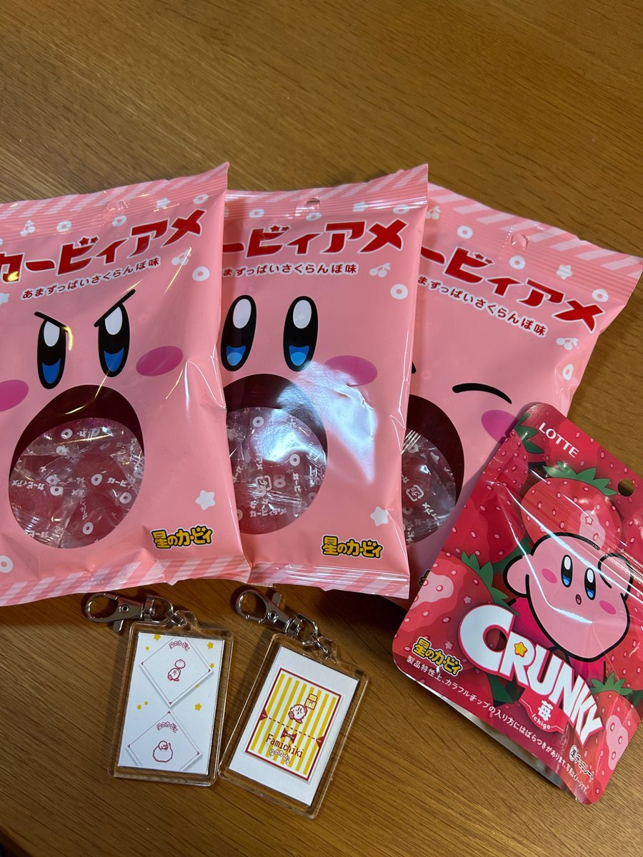 ファミマコラボ第二弾〜‼️ 写真載せる前にクランキー🍫 食べちゃったな(食欲が勝つネ) お口から飴ちゃんが見えるパッケージ 最高すぎる、職場に持っていこっと🍒 #星のカービィ #カービィたちの超まんぞくフェス pic.x.com/bmJVsJaZsj