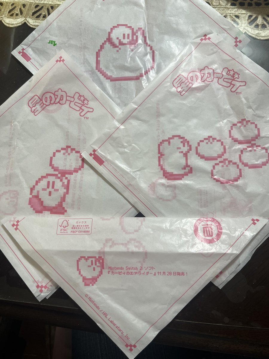 初日にファミマとカービィちゃんコラボ②買ってました⭐。最初中華まんとか普通の袋で出てきちゃって、変えてもらっちゃった。注文する時に言えばよかったね😔。 #カービィ #カービィたちの超まんぞくフェス pic.x.com/iqL3dZ3AkW
