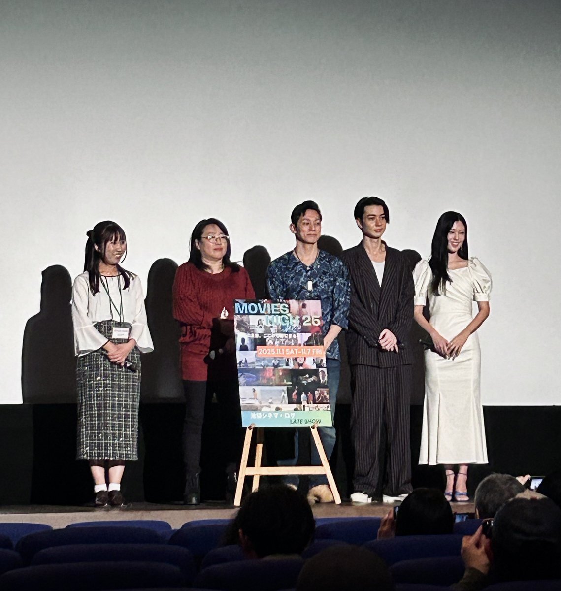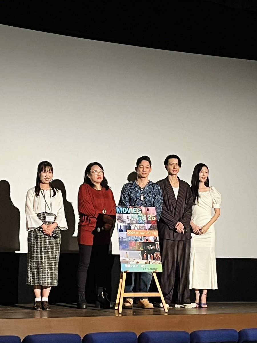 11/1(土)『MOVIES-HIGH 25』 クリエイターコースADVANCE① 舞台挨拶 『#Overwrite』宇野恵理華(プロデューサー)、『#ガジュマルの樹の下で』青山一澄、東夏輝、中村樹里、小林寿子監督、司会:小川和也(NCWクリエイターコースディレクター) #ムビハイ25 #シネマロサ #インディーズフィルムショウ pic.x.com/wZms9PUbAw