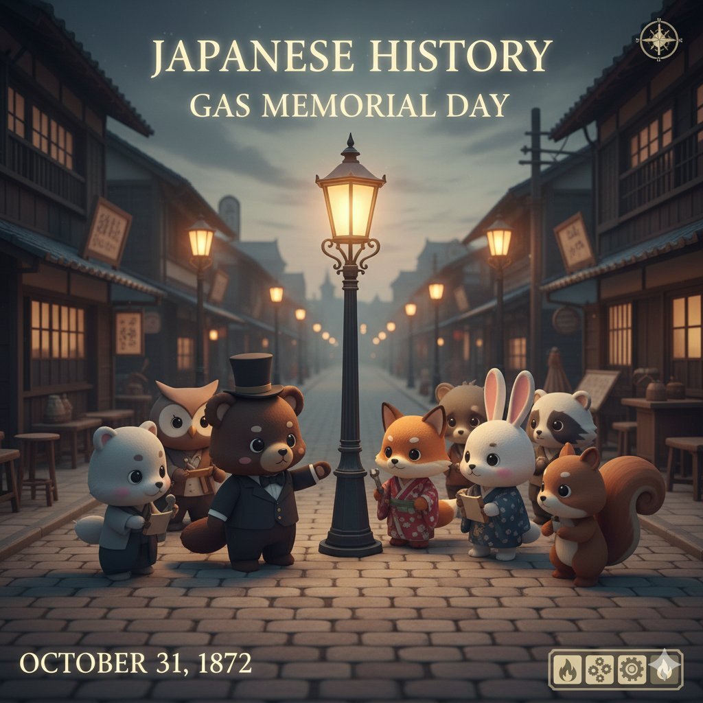 今日は、ガスの記念日✨ 153年前(1872年)の今日、横浜の馬車道で、日本で初めてのガス灯が使われた日✨ それまでは、ちょうちん🏮やあんどんしかなく、ガス灯で夜も街が明るくなり、人々は喜んだ😌 電気の登場で、ガス灯は一部を除いて、ほとんど使われなくなった😅 #ガスの記念日 #ガス灯 #10月31日
