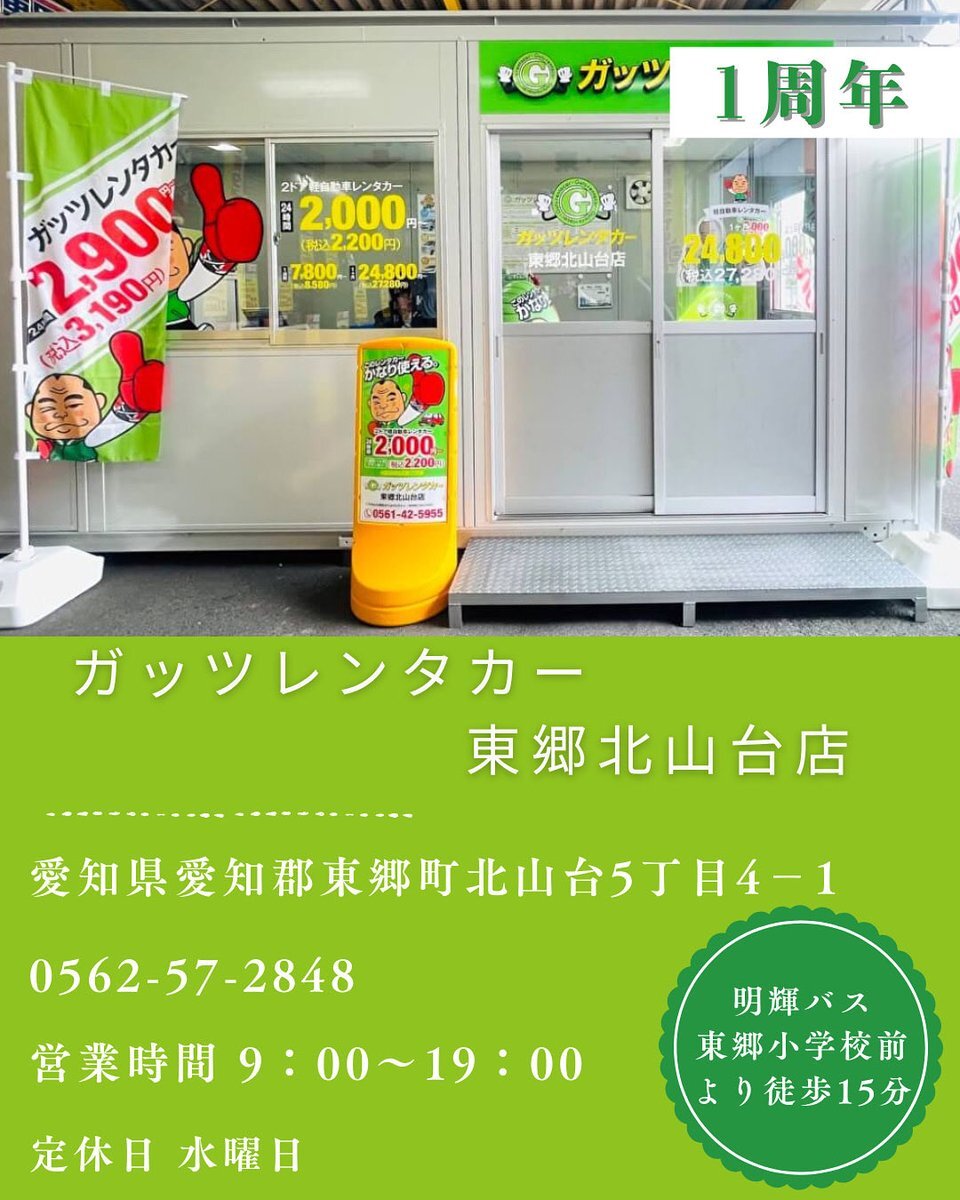 2025年10月29日(水)にガッツレンタカー東郷北山台店が1周年を迎えました㊗️🎉 ガッツレンタカー東郷北山台店 愛知県愛知郡東郷町北山台5丁目4-1 0562-57-2848 guts-rentacar.com/shop/aichi/tog… #レンタカー #ガッツレンタカー #愛知県 pic.x.com/ItpJndqgTg