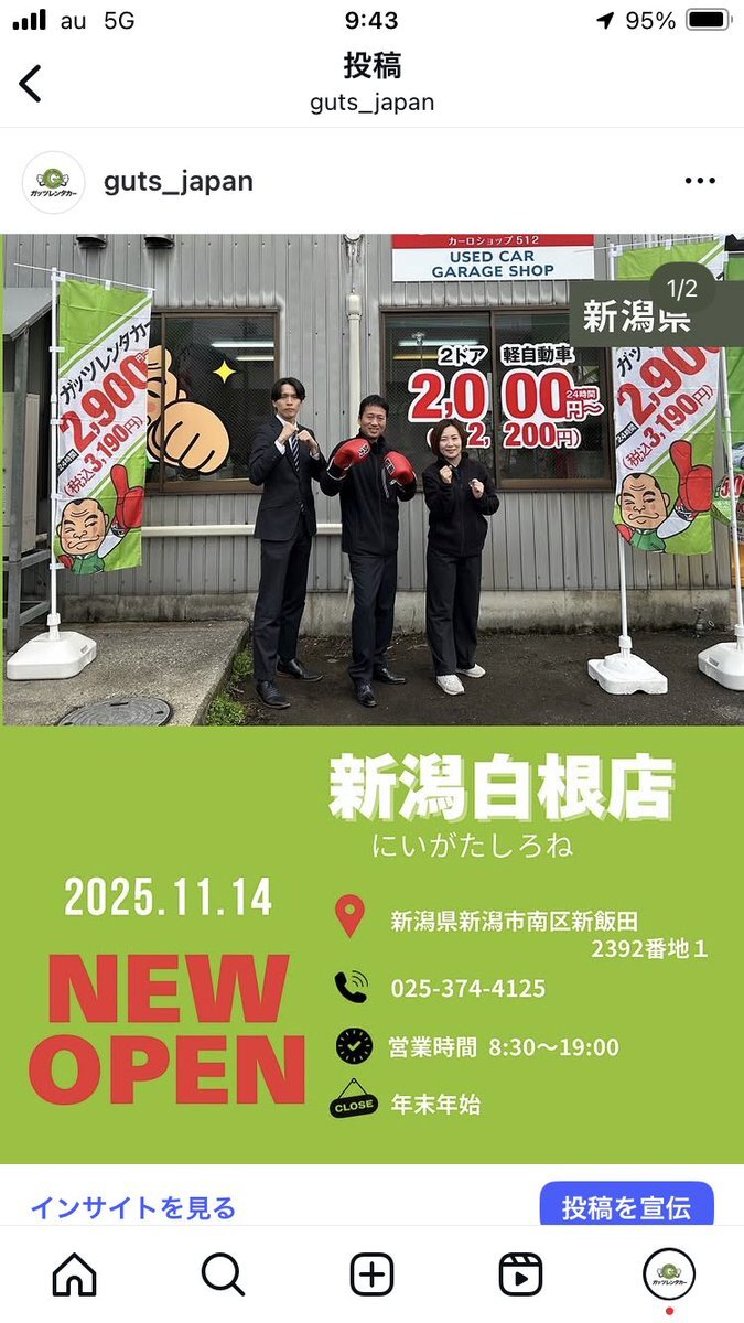 2025年11月14日(金)にガッツレンタカー新潟白根店がオープン致しました!㊗️🎉 ガッツレンタカー 新潟白根店 📍新潟県新潟市南区新飯田2392番地1 📞025-374-4125 ⏱8:30〜19:00 定休日:年末年始 guts-rentacar.com/shop/niigata/n… #ガッツレンタカー #新潟県 pic.x.com/qUUbvKu9nJ