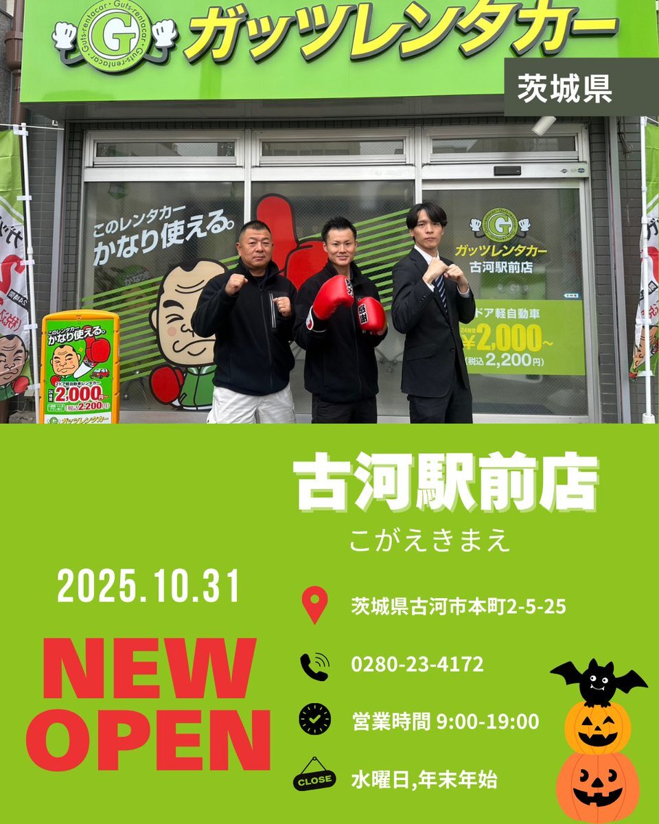 2025年10月31日(金)にガッツレンタカー古河駅前店がオープン致しました!㊗️🎉 ガッツレンタカー古河駅前店 茨城県古河市本町2-5-25 0280-23-4172 guts-rentacar.com/shop/ibaraki/k… #ガッツレンタカー #茨城県 pic.x.com/8b6pBbPJyC