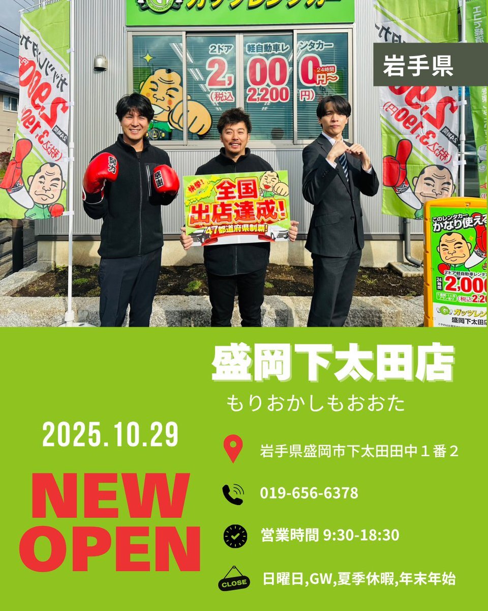 2025年10月29日(水)にガッツレンタカー盛岡下太田店がオープン致しました㊗️🎉 ガッツレンタカー盛岡下太田店 岩手県盛岡市下太田田中1番2 019-656-6378 guts-rentacar.com/shop/iwate/mor… #レンタカー #ガッツレンタカー #岩手県 pic.x.com/3hv9n28kkt